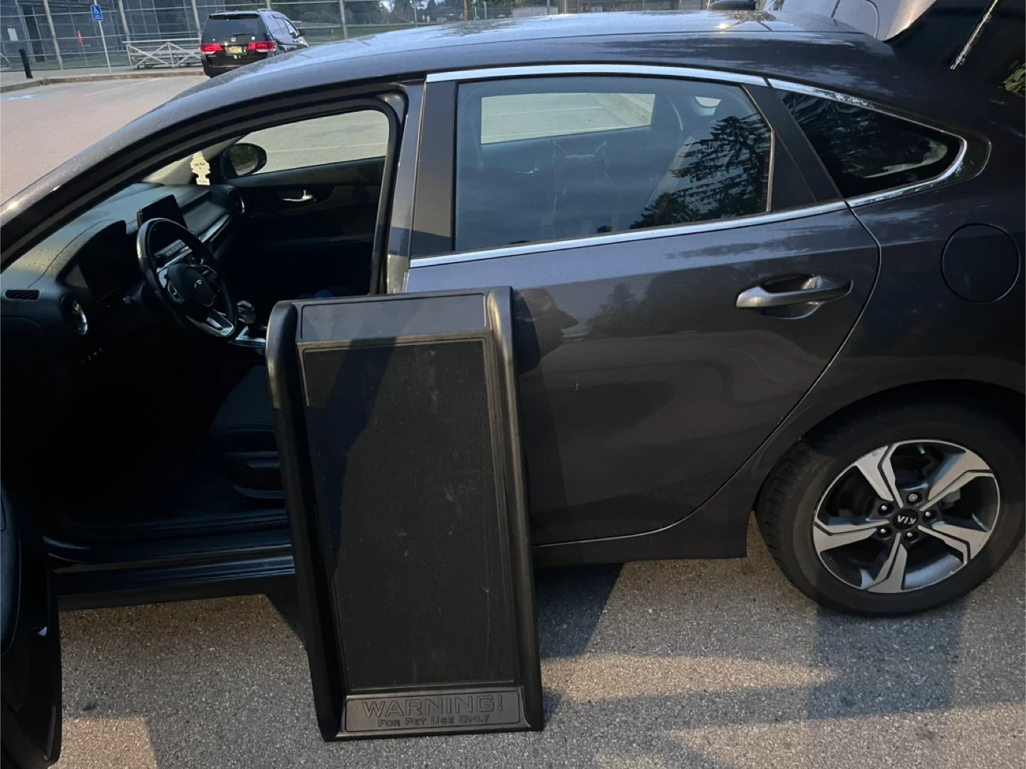 I purchased this Small Dog Ramp off marketplace for $40 and never ended up using it. I never measured how wide my back door open in my car.. so it doesn’t lay flat for my dog to use. It’s in perfect condition. Besides some dog nail scratches from the previous owners dogs - Dimensions: 39.5" long x 14.75" wide - Lightweight and portable, weighing only 8 pounds