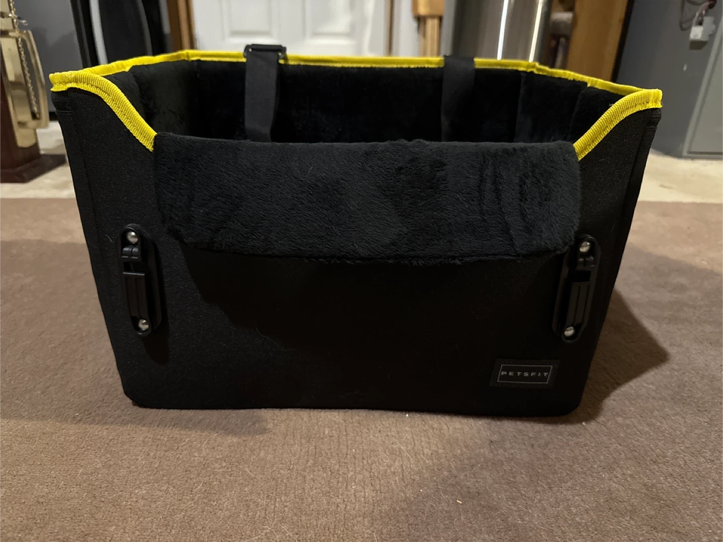 Selling a PETSFIT dog car seat carrier in black. It's in great condition and ready for your furry friend's next adventure! This carrier is designed to keep your pet safe and comfortable during car rides