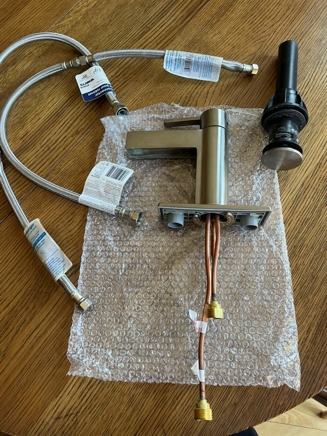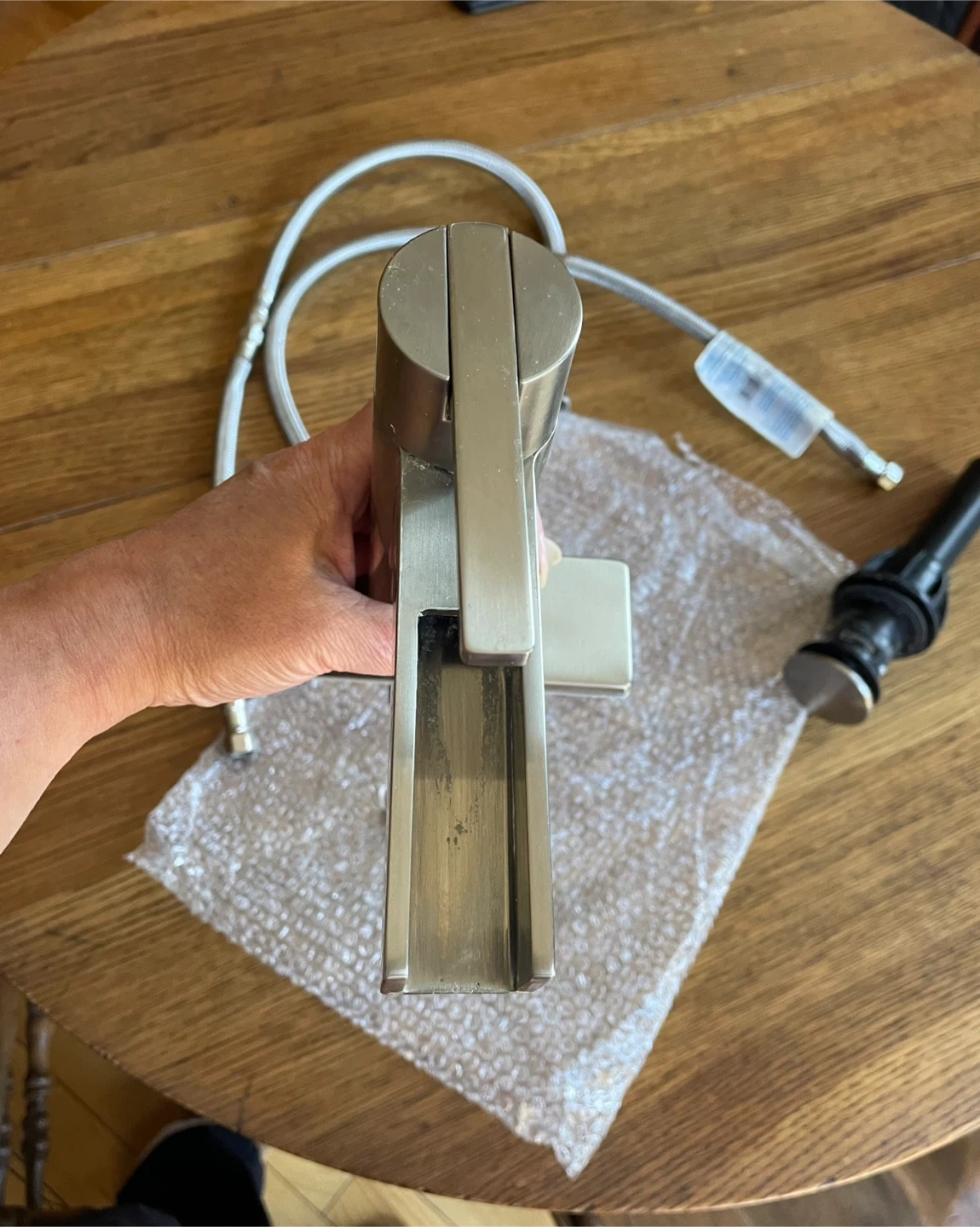 Selling a Pfister bathroom faucet, model LF042VGKK. It's a stylish addition to any bathroom. The faucet comes in a brushed nickel finish. Manufacturing date is 2019 April 26.