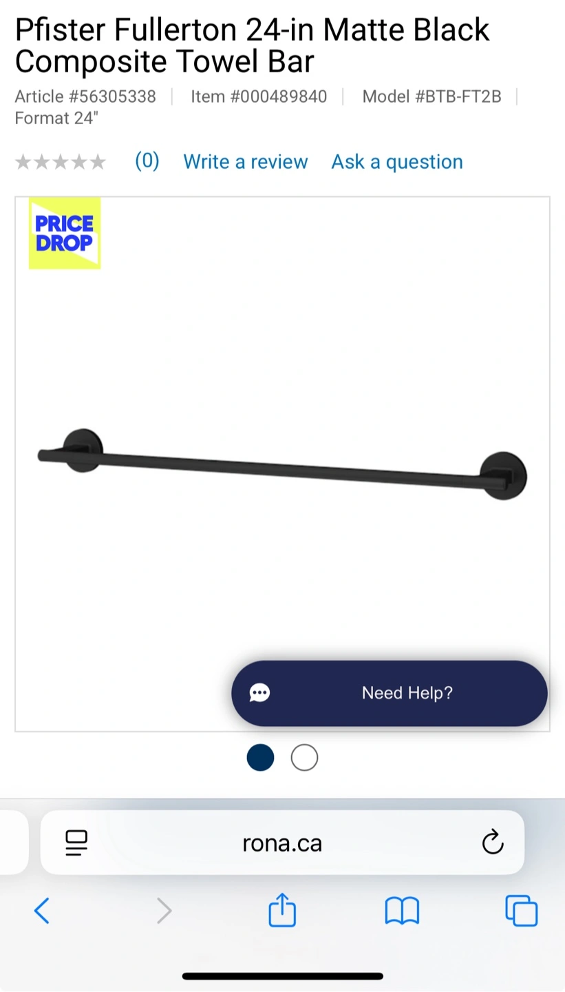 Pfister Fullerton 24-inch Matte Black Towel Bar
