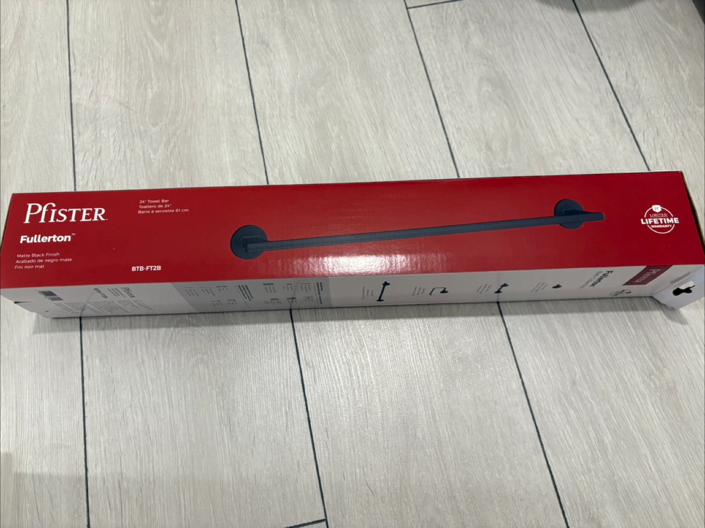 New in box. Matte black finish. 24” Includes all mounting hardware. Easy installation.