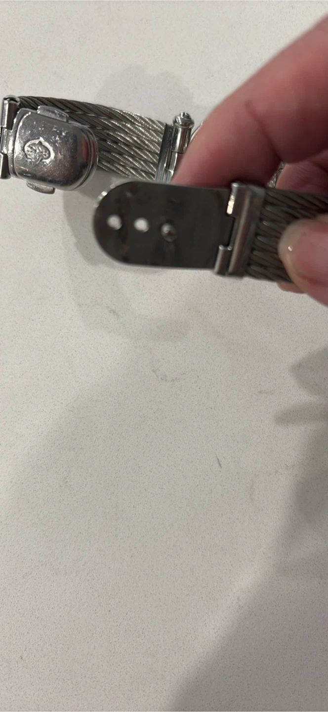 Selling a Philippe Charriol automatic watch. It features a blue face and a unique cable-style band. The watch is in good condition and has a date display at the 6 o'clock position. A stylish timepiece for any occasion!