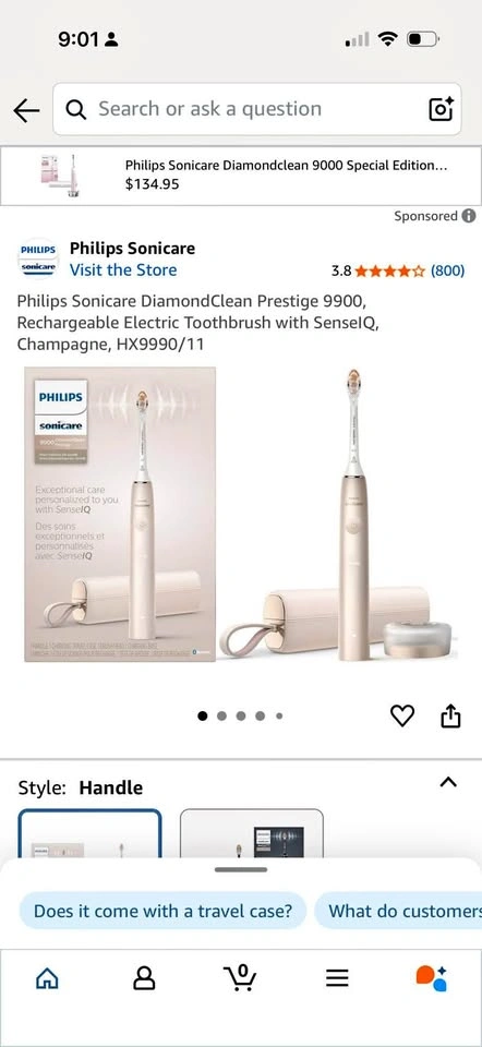 Never used, original price was $500. It's pink, and you can check it out on Amazon. Just an open box, but everything is still in the package. Philips Sonicare DiamondClean Prestige 9900, Rechargeable Electric Toothbrush with SenseIQ, Pink, HX9990/13