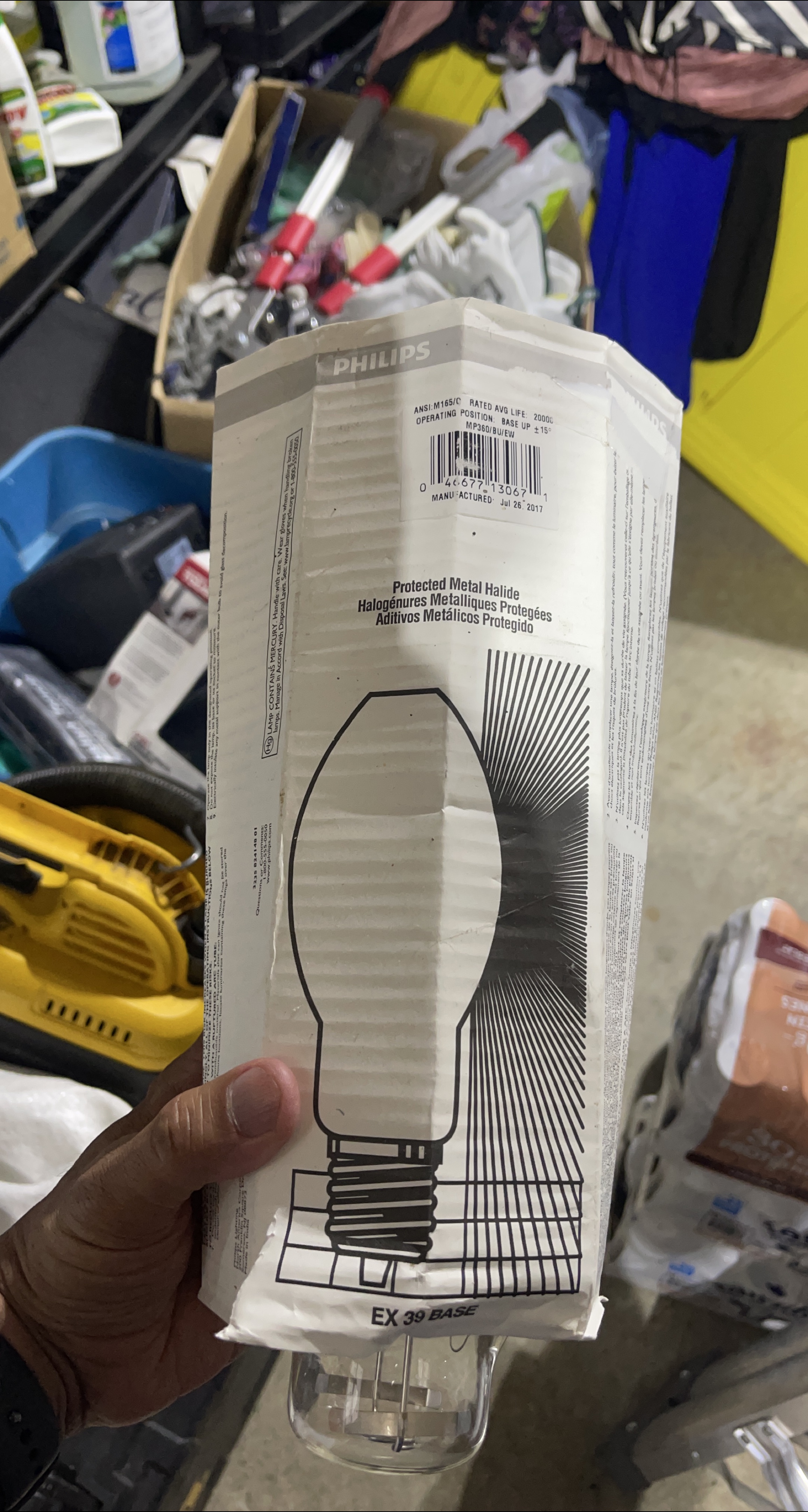 Selling a Philips Protected Metal Halide light bulb. The box has some wear, but the bulb itself is in good condition. - ANSI: M165/C - Rated Avg Life: 20000 - Operating Position: Base Up ±15° - MP360/BU/EW - Manufactured: July 26, 2017 - EX 39 Base