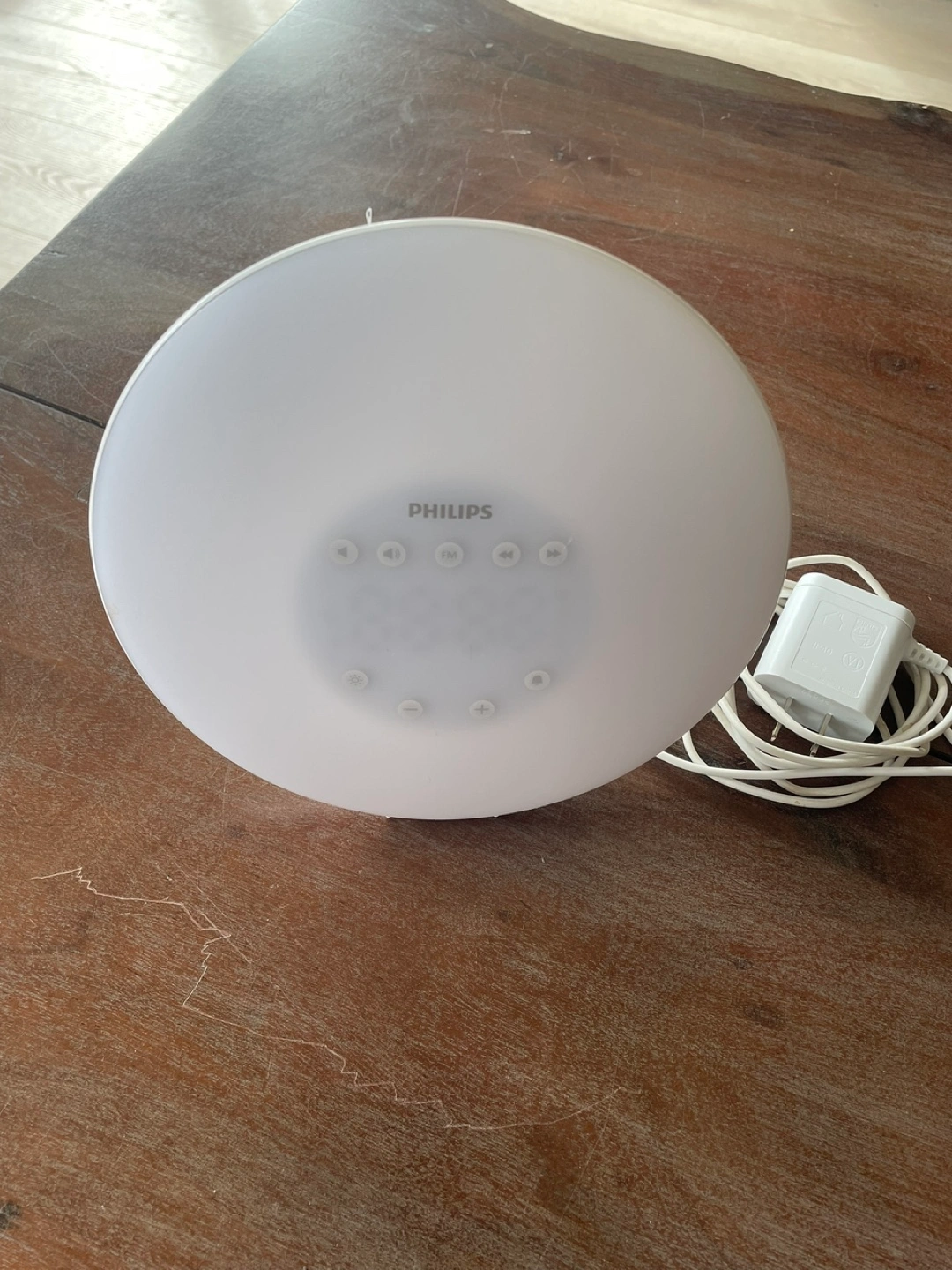 Show allPhilips wake-up light alarm clock. Features sunrise simulation, two natural sounds, and a radio. Great for a peaceful wake-up. I do not have the box any more.