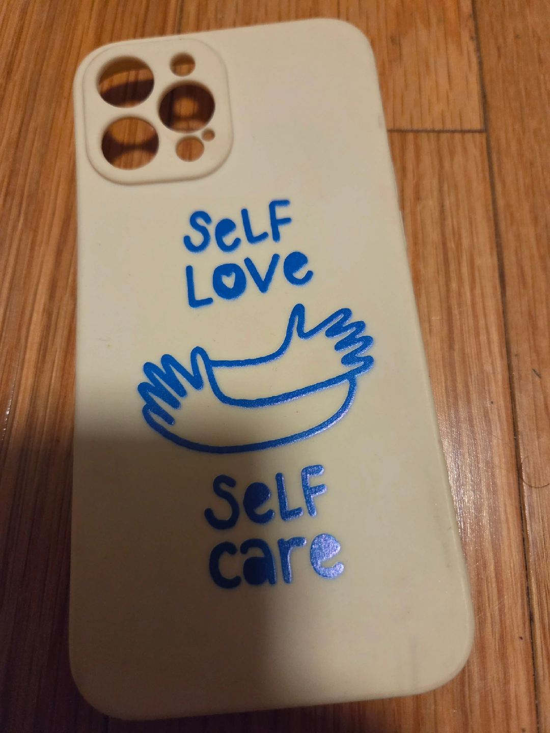 Cute phone case with a 'Self Love' and 'Self Care' design. It's in great condition and ready for a new phone!