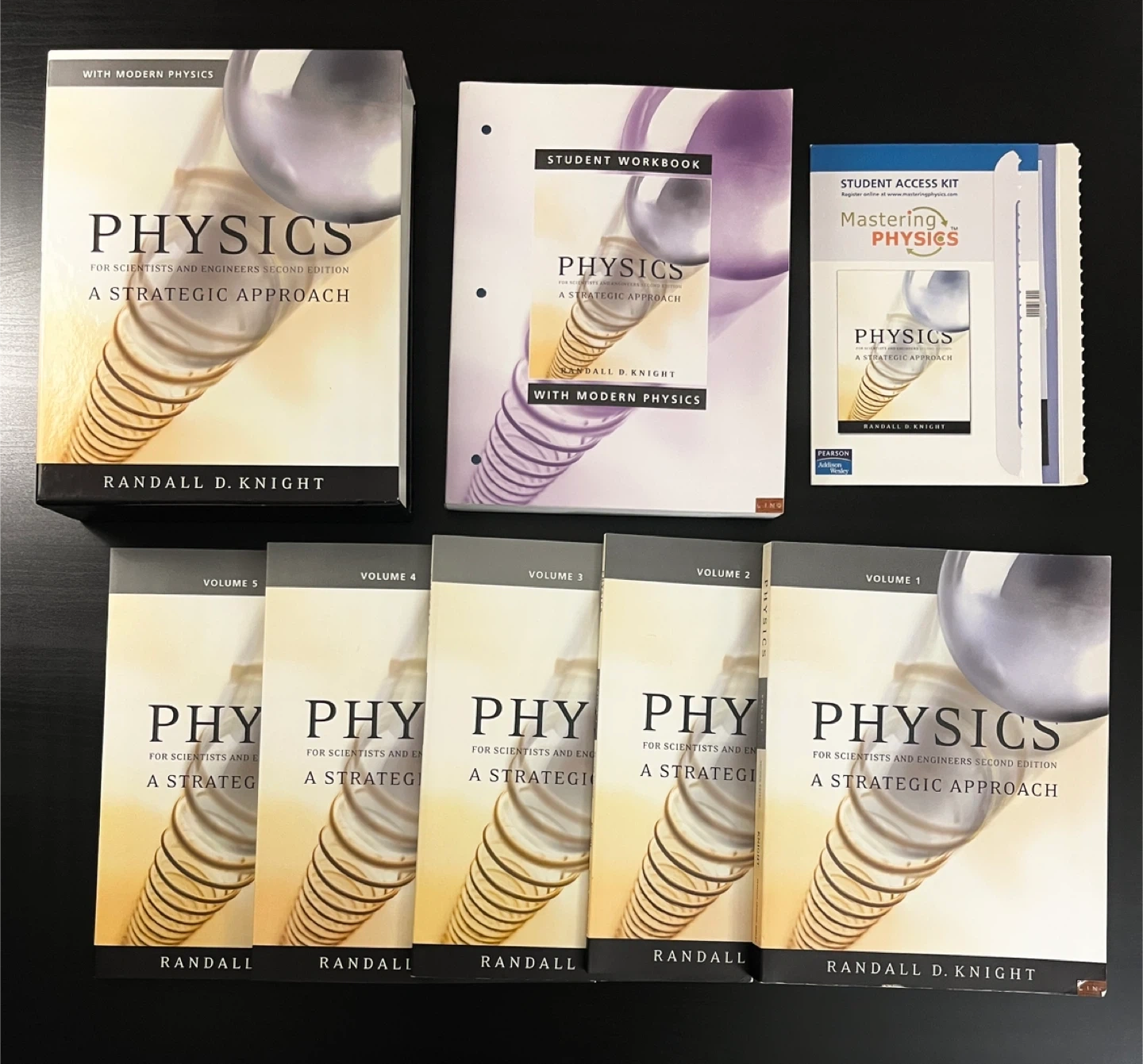 -Full set of "Physics: A Strategic Approach" by Randall D. Knight, Second Edition. -Includes Volumes 1-5, the Student Workbook, and the Student Access Kit. **Great condition, no notes or anything inside the books. Like new.**