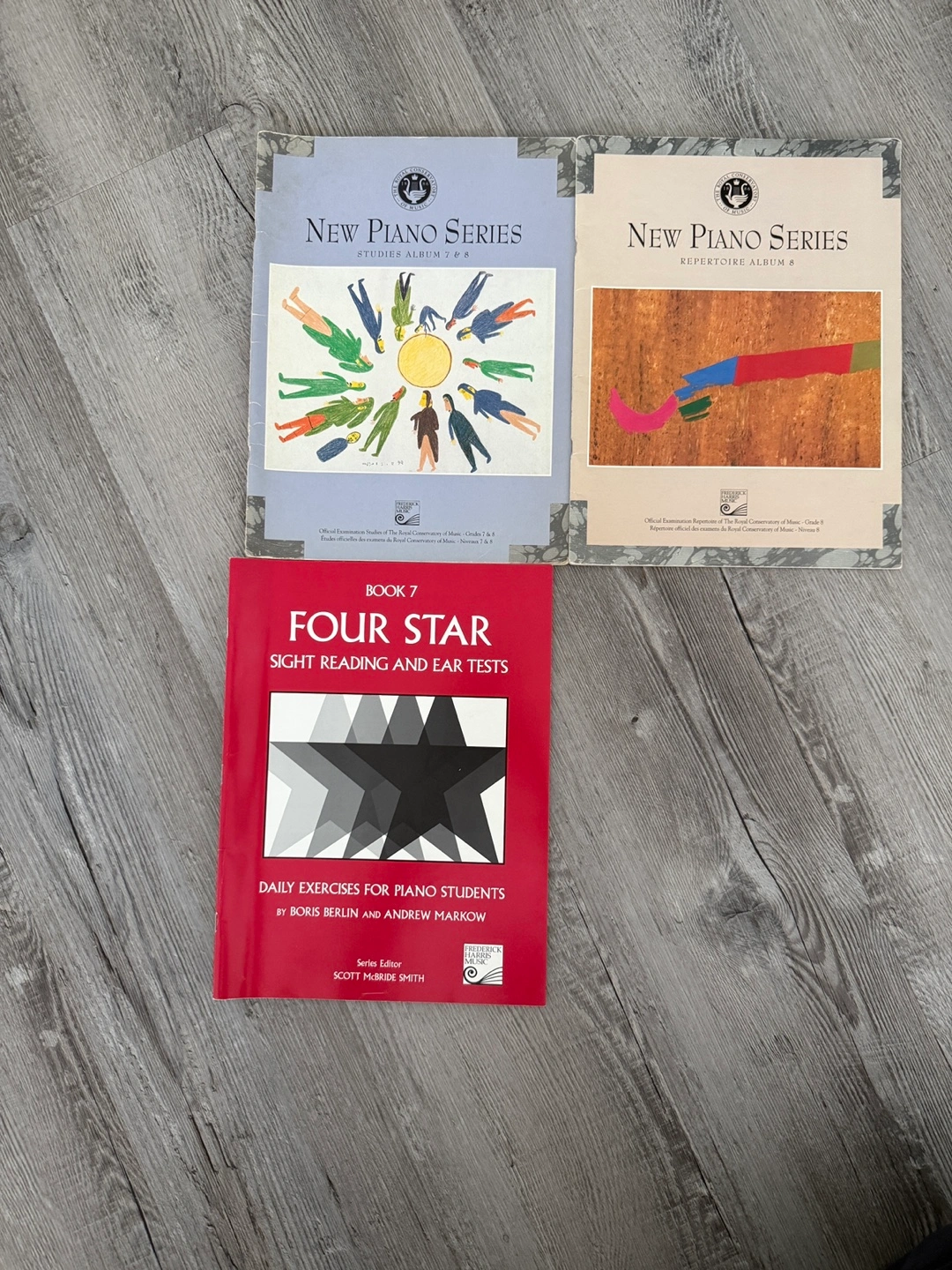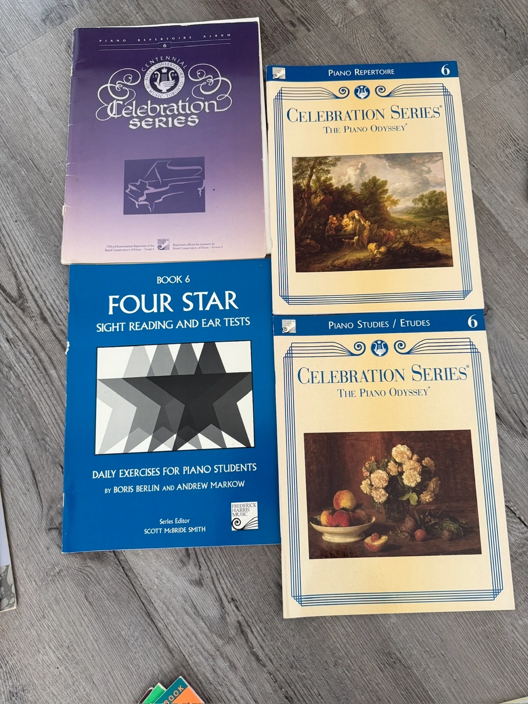 Selling a variety of piano books including Celebration Series, Four Star Sight Reading and Ear Tests, and Technical Requirements for Piano. Perfect for piano students of all levels! $12 each book, negotiable if you buy a set or the whole lot!