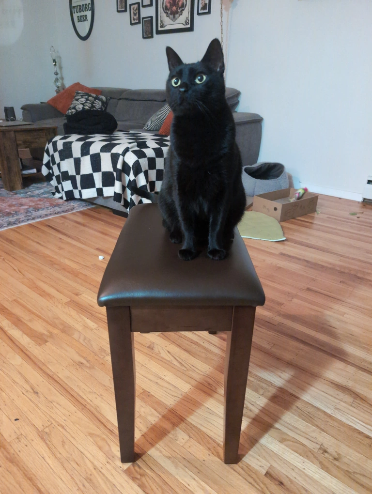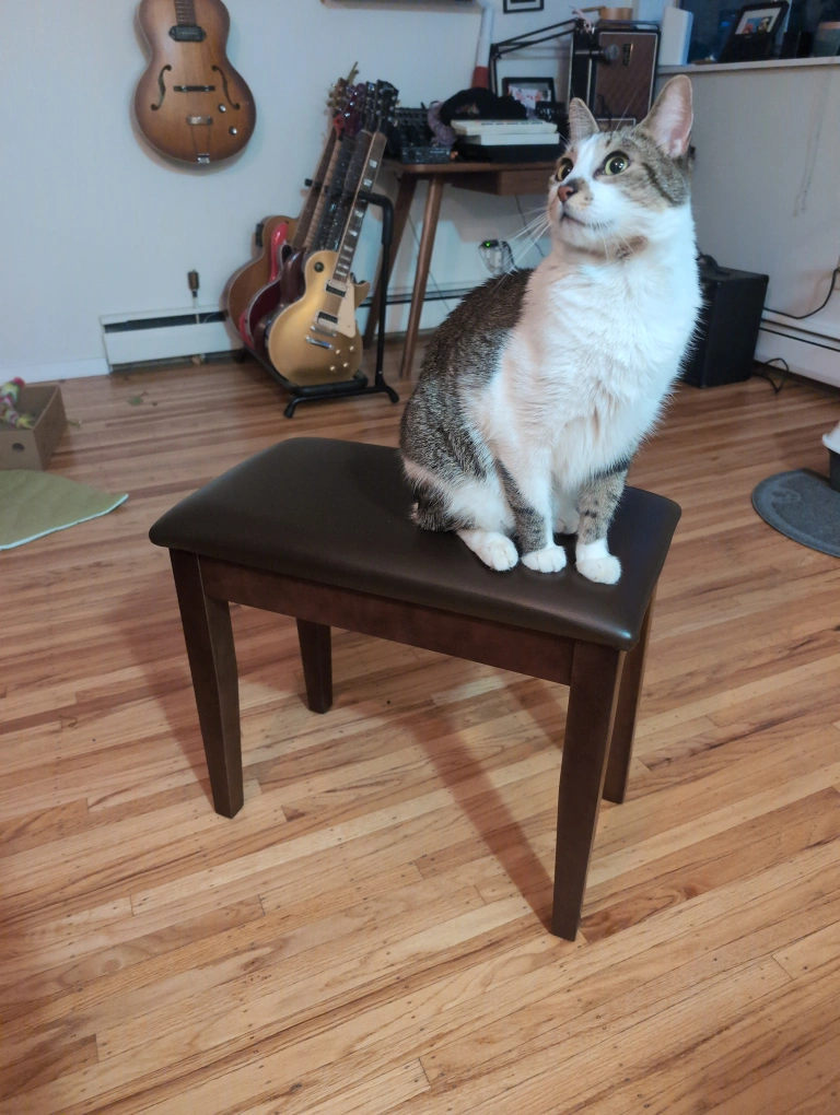 selling piano stool. basically new. vegan leather. cats for scale not for sale.