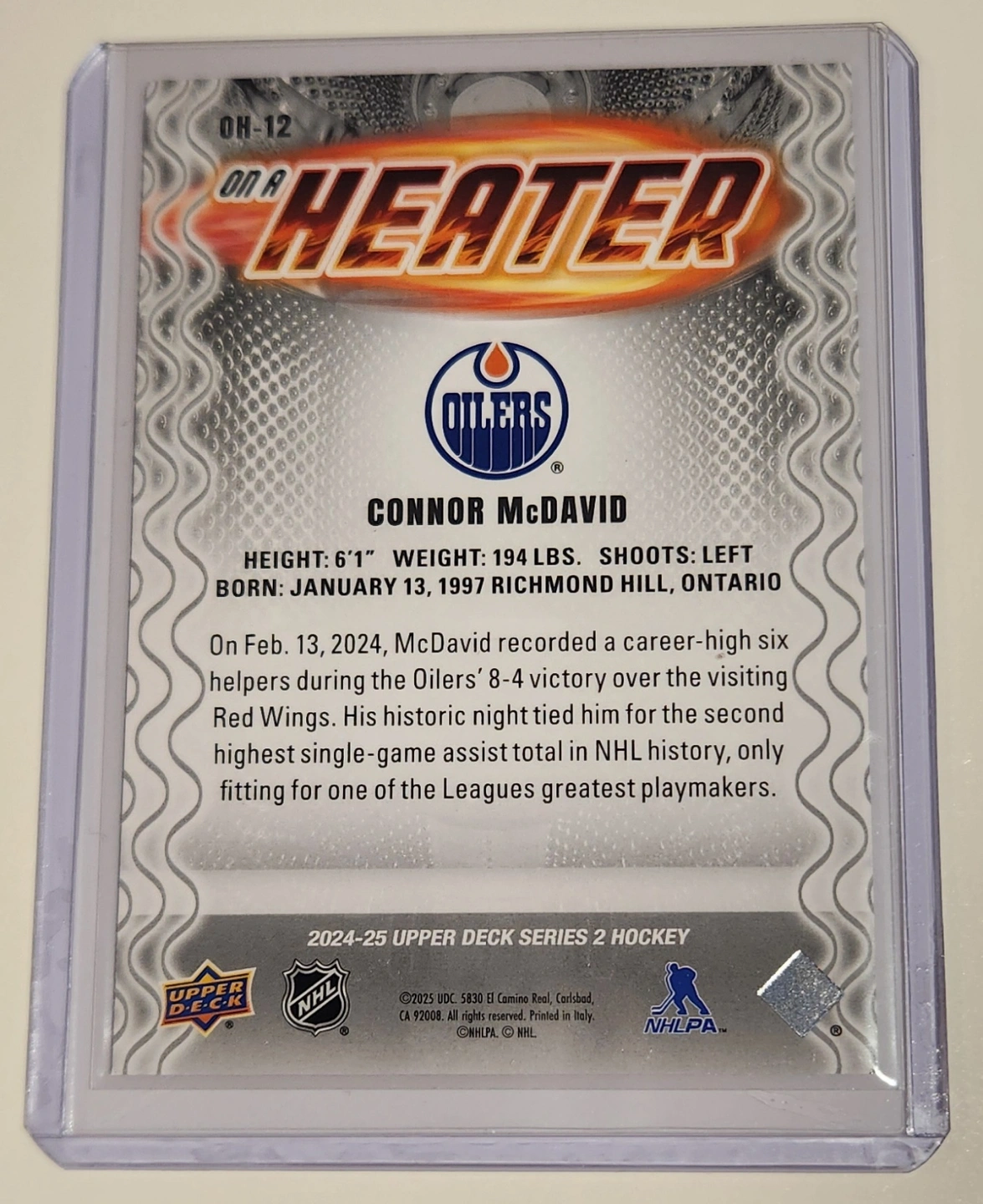 Hi there! - yes, the hockey cards pictured are 100% available, no need to ask, only to message to pick up or ask questions based on the photos provided - located at M8V 1G5 & I will provide the full address if you are interested in picking up. Not offering shipping. Kindly asking for cash upon purchase. Price is firm however, I am offering bundle deals and discounts If you're looking to purchase other items from my listings. Please see below - please be kind and respectful :) Selling as a pair for $10 or individual asking prices below: Edmonton Oilers Hockey Cards Connor McDavid Green Dazzler Series 1 ($7) Connor McDavid On a Heater Series 2 ($5) Upper Deck series inserts 2024-2025 Final picture in listing is Ryan Nugent-Hopkins Outburst, asking $7 as well. Or, you can add it to the bundle for $4. For a total of $14 for all 3 cards. Mint - from pack to protector/sleeve immediately. Check out my listings for more Collectibles, Comics, Cards, Sports Memorabilia, Funko Pops and Soda, and much more. No trades. Thank you for taking the time to read the description.