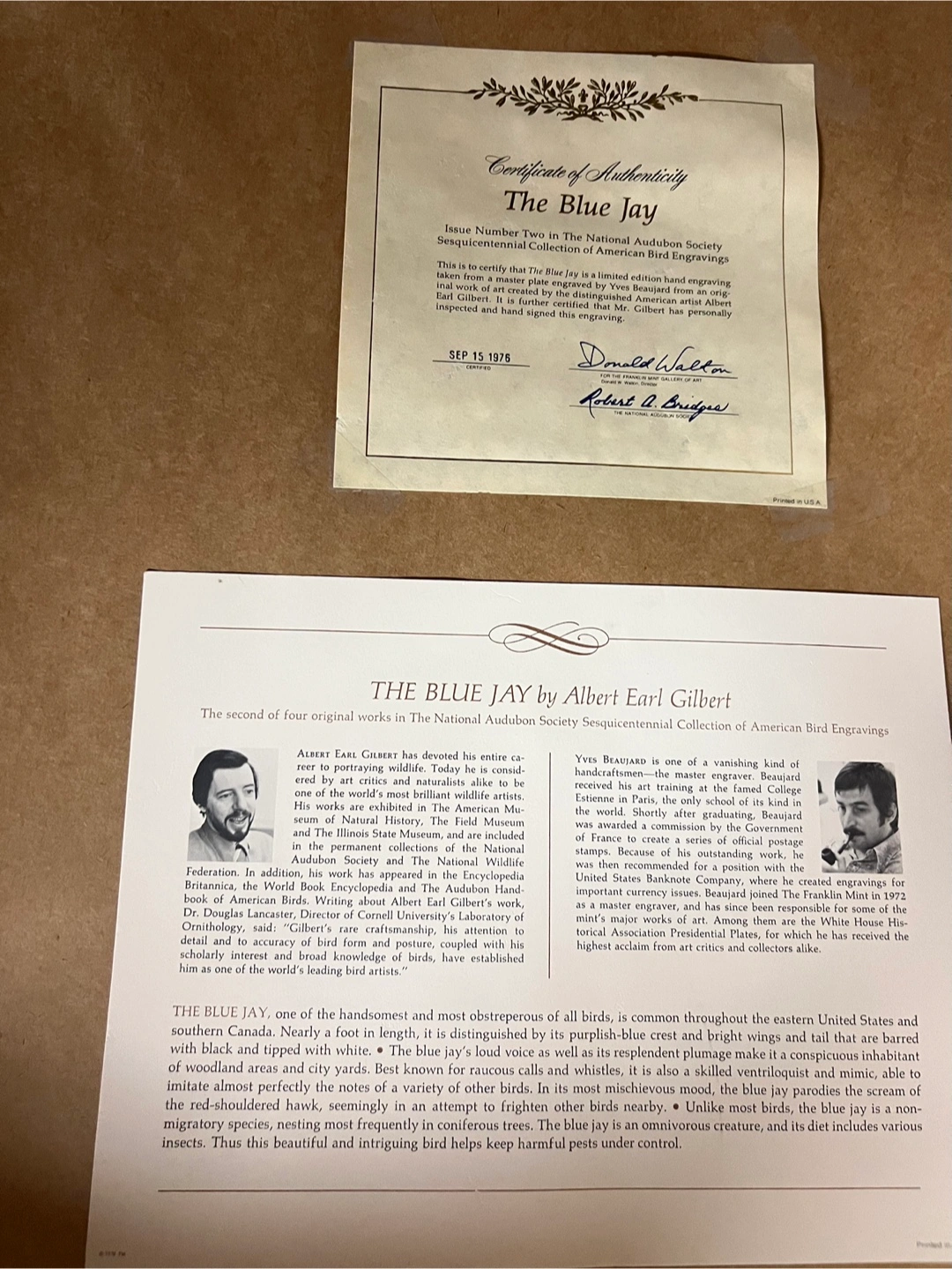 Selling a set of framed bird prints by Albert Earl Gilbert from the National Audubon Society Sesquicentennial Collection of American Bird Engravings. Includes The Blue Jay (Sep 15 1976), The Cardinal (Feb 14 1977), and The Screech Owl (Dec 5 1978). They are in great condition and ready to hang in your home!