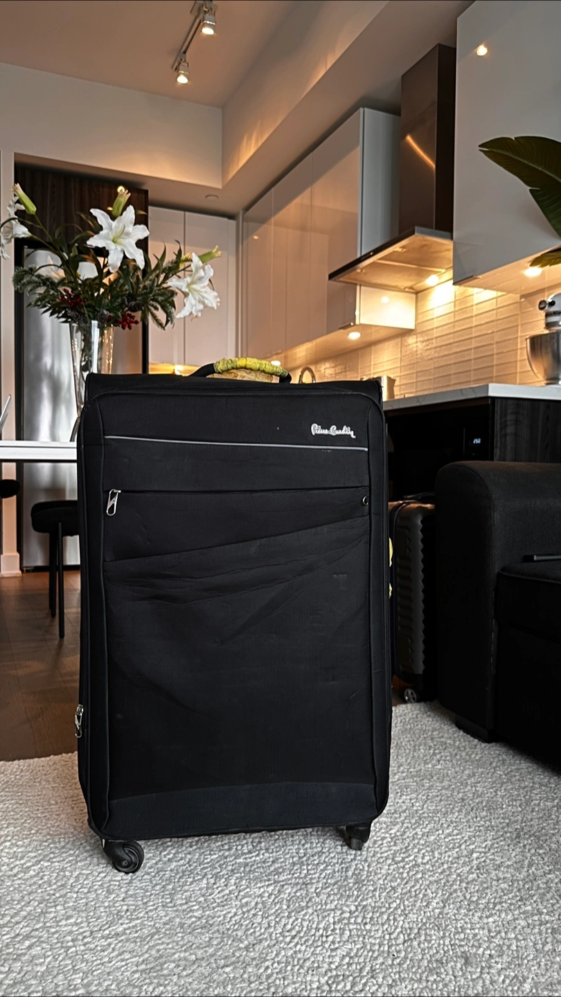 Selling a Pierre Cardin suitcase in black! It's in good condition and ready for your next trip. Features wheels for easy transport and a sleek design. Orginally: 200$