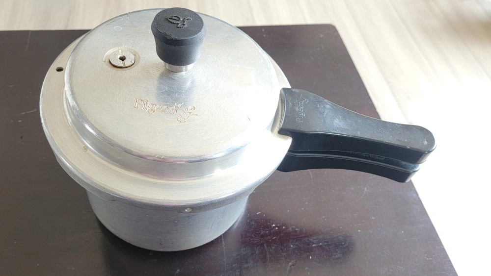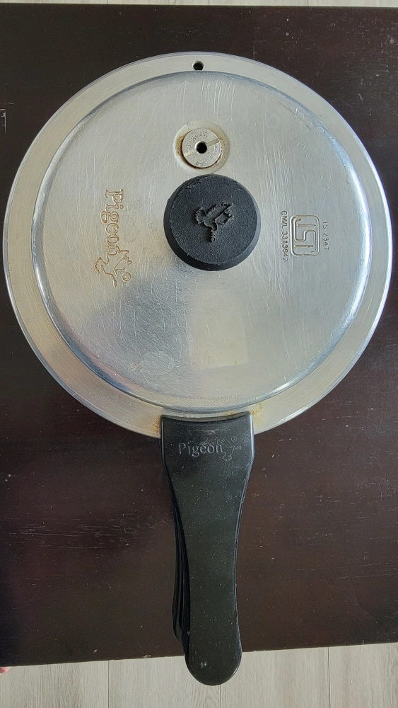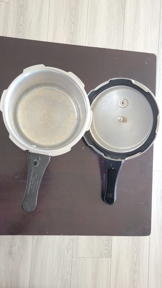 Aluminium pressure cooker, with its lid and handle.. EUC.Using this can save time and energy while preparing your meals.