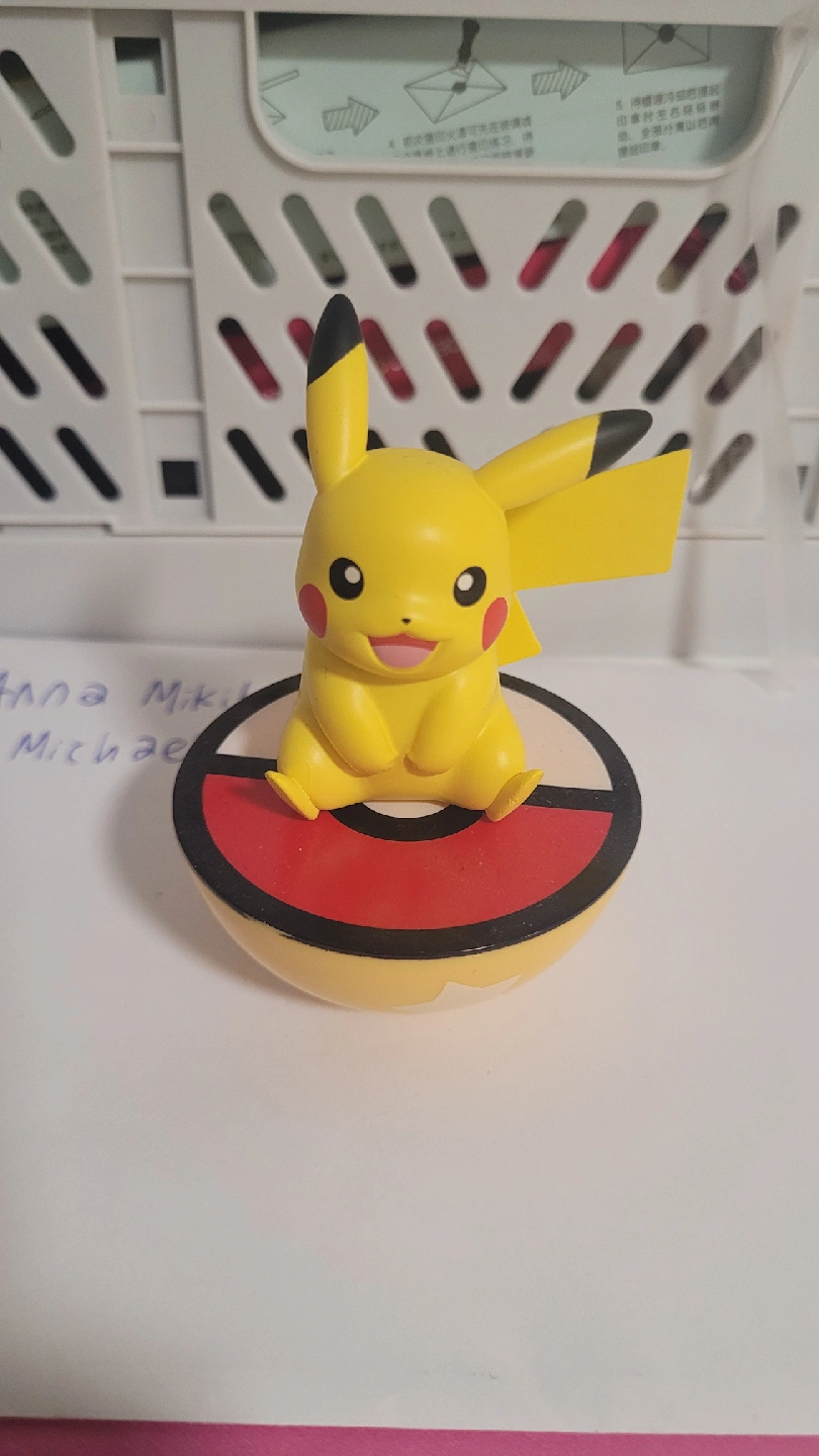 A cute Pikachu figurine sitting on top of a Poké Ball stand! Perfect for any Pokémon fan or collector looking to add a little charm to their space