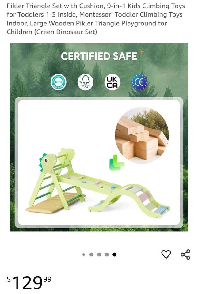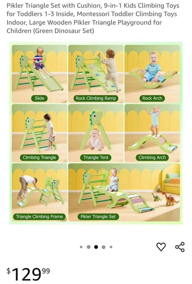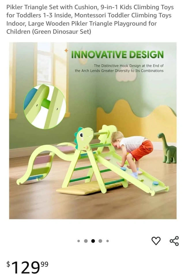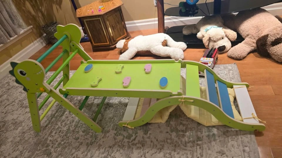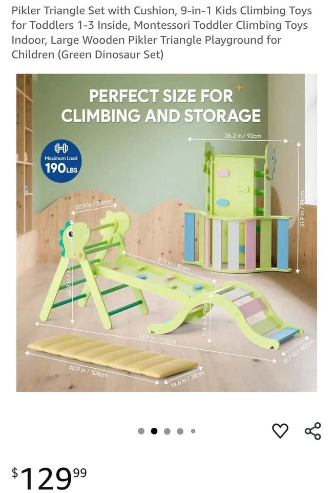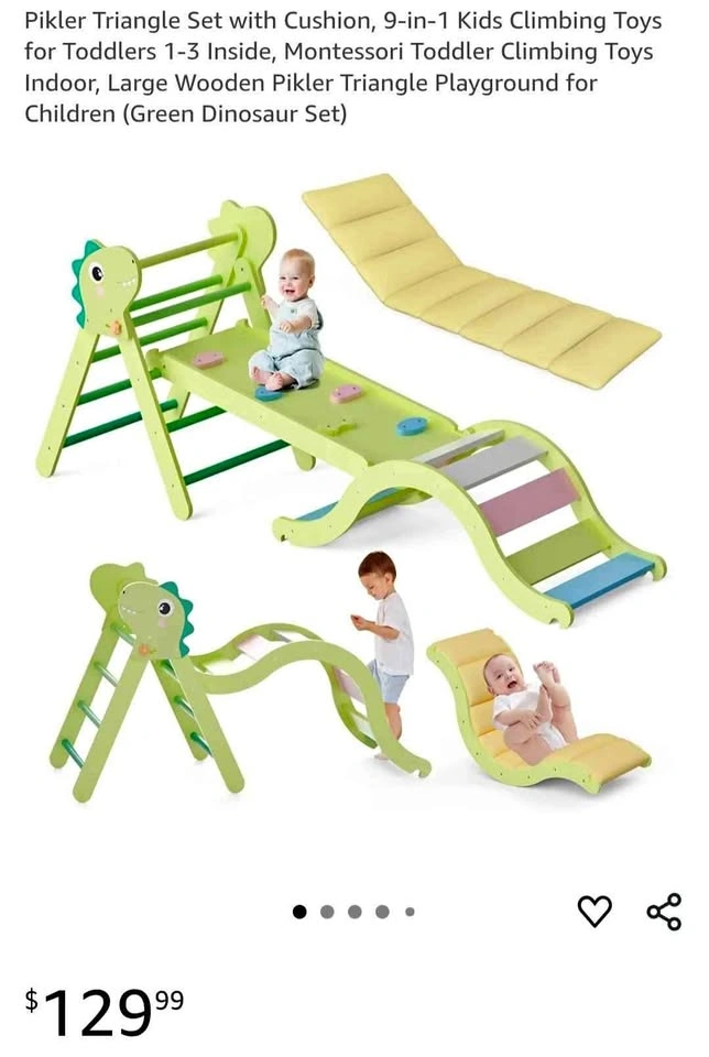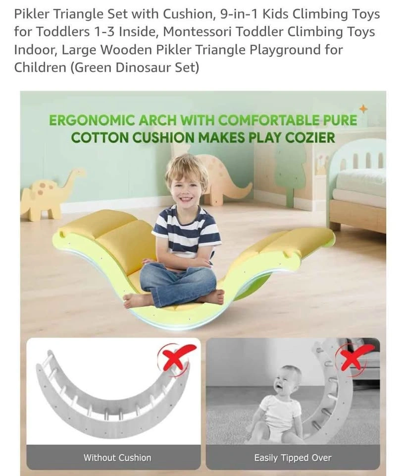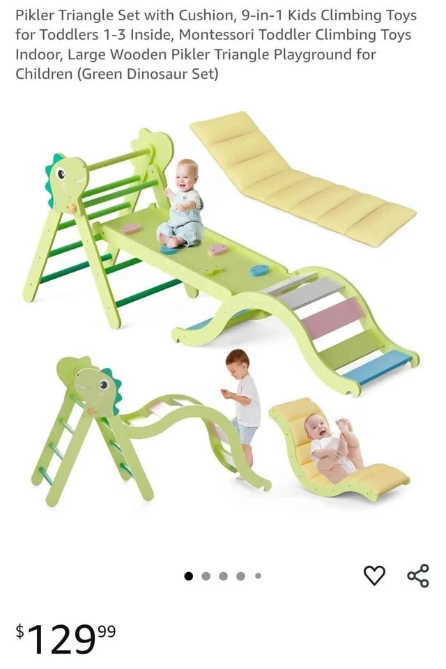 Pikler Triangle Set with Cushion, 9-in-1 Kids Climbing Toys for Toddlers 1-3 Inside, Montessori Toddler Climbing Toys Indoor, Large Wooden Pikler Triangle Playground for Children (Green Dinosaur Set) Pick up in Ajax bayly and harwood intersection. Please check my other listings!
