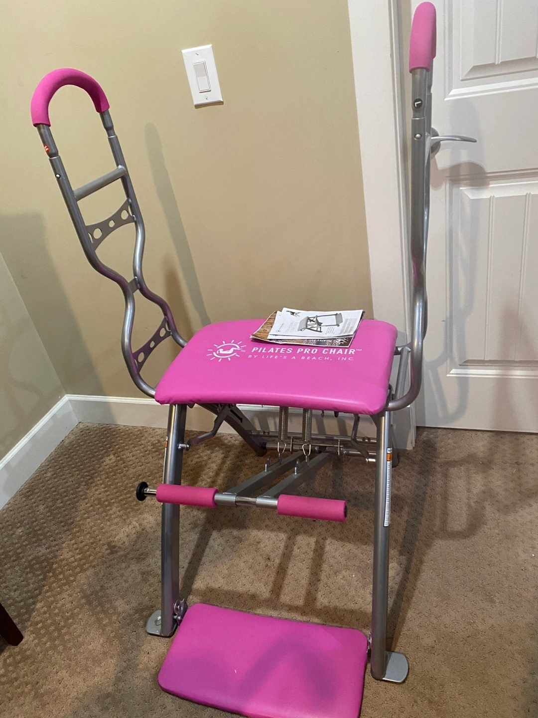 Pilates Pro Chair Excellent - as new condition , never used unless we count the time I set freshly folded towels on it ๐ค Amazon price $726.88 $180 obo 48 inches high, 28 inches wide Heavy, solid construction Downsizing some of my delusions Pick up Mission