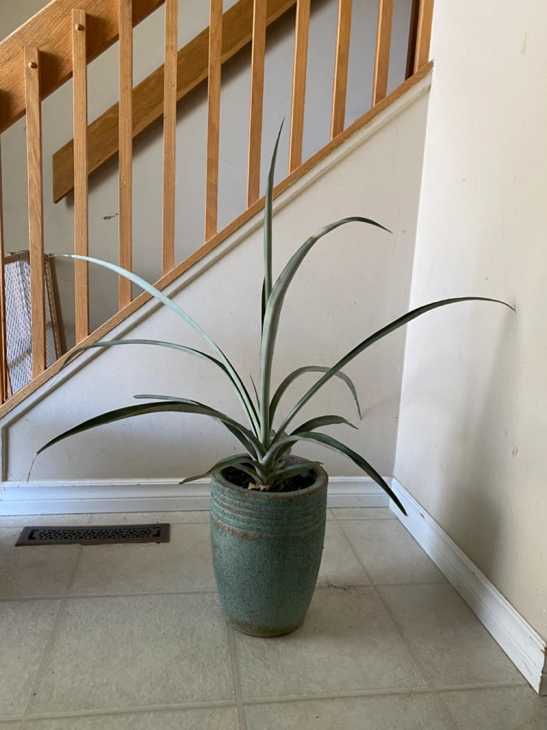 Selling a pineapple plant in a green pot! This plant adds a tropical touch to any space. It's in good condition and ready to bring some greenery to your home