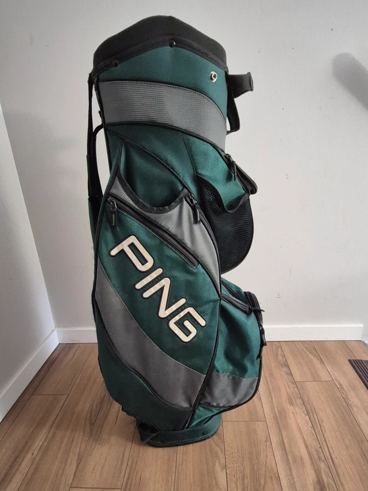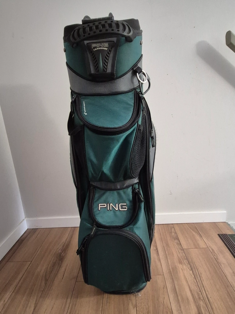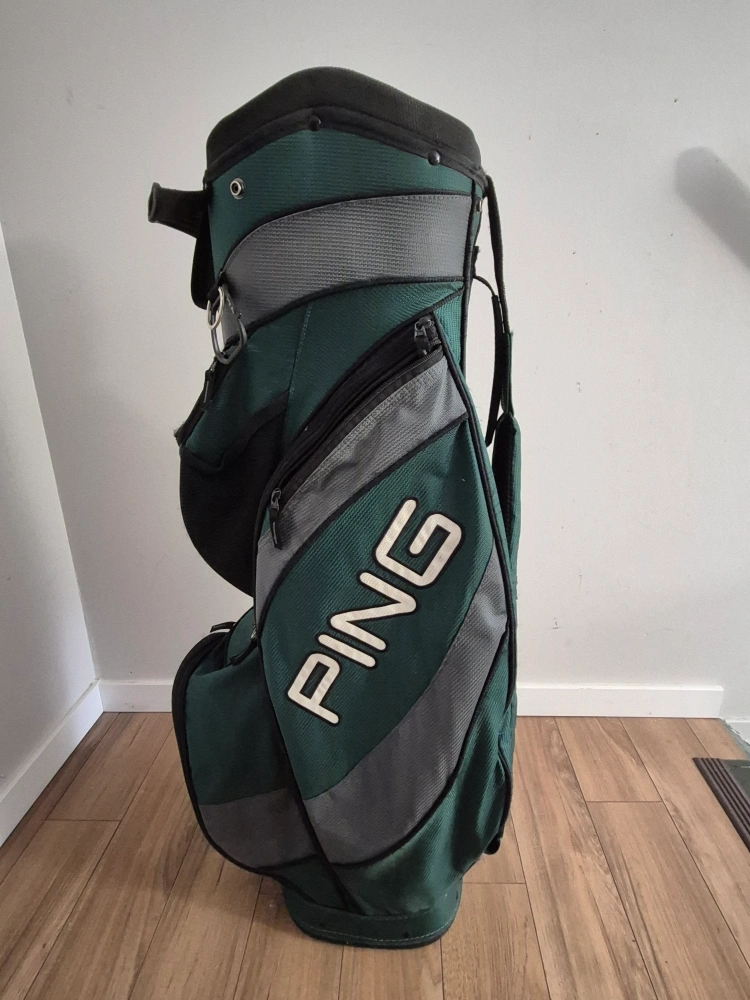 Selling a PING Traverse golf bag. It's a stylish green and grey colour. Lots of pockets and storage space for all your clubs and accessories. Perfect for hitting the links!