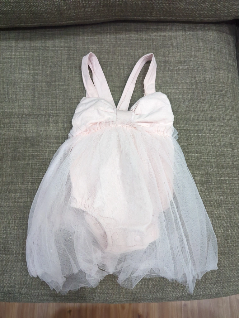 This adorable baby dress features a soft pink bodice and a delicate tulle skirt! It's perfect for a special occasion or just for adding a touch of sweetness to your little one's wardrobe. The dress is in great condition and ready for a new home. Age 0-3 months