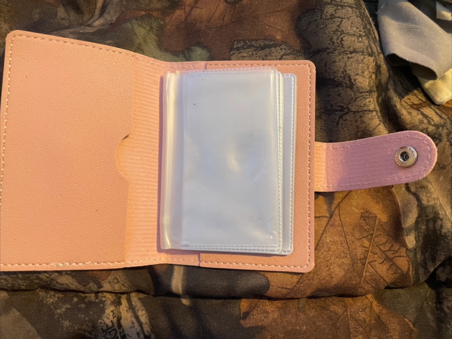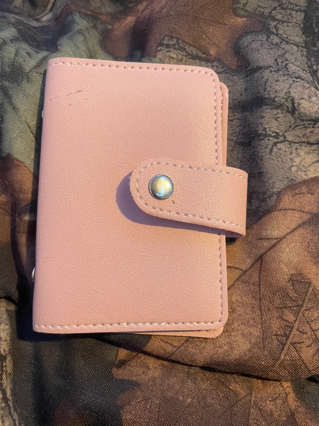Here's a cute pink card holder! It's in great condition and perfect for keeping your cards organized. 24 cards can be stored.