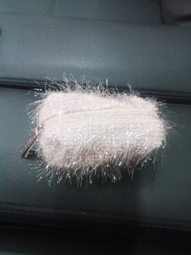 Selling a cute pink fuzzy coin purse! It's perfect for carrying your change, cards, or small accessories. It's in great condition and ready for a new home