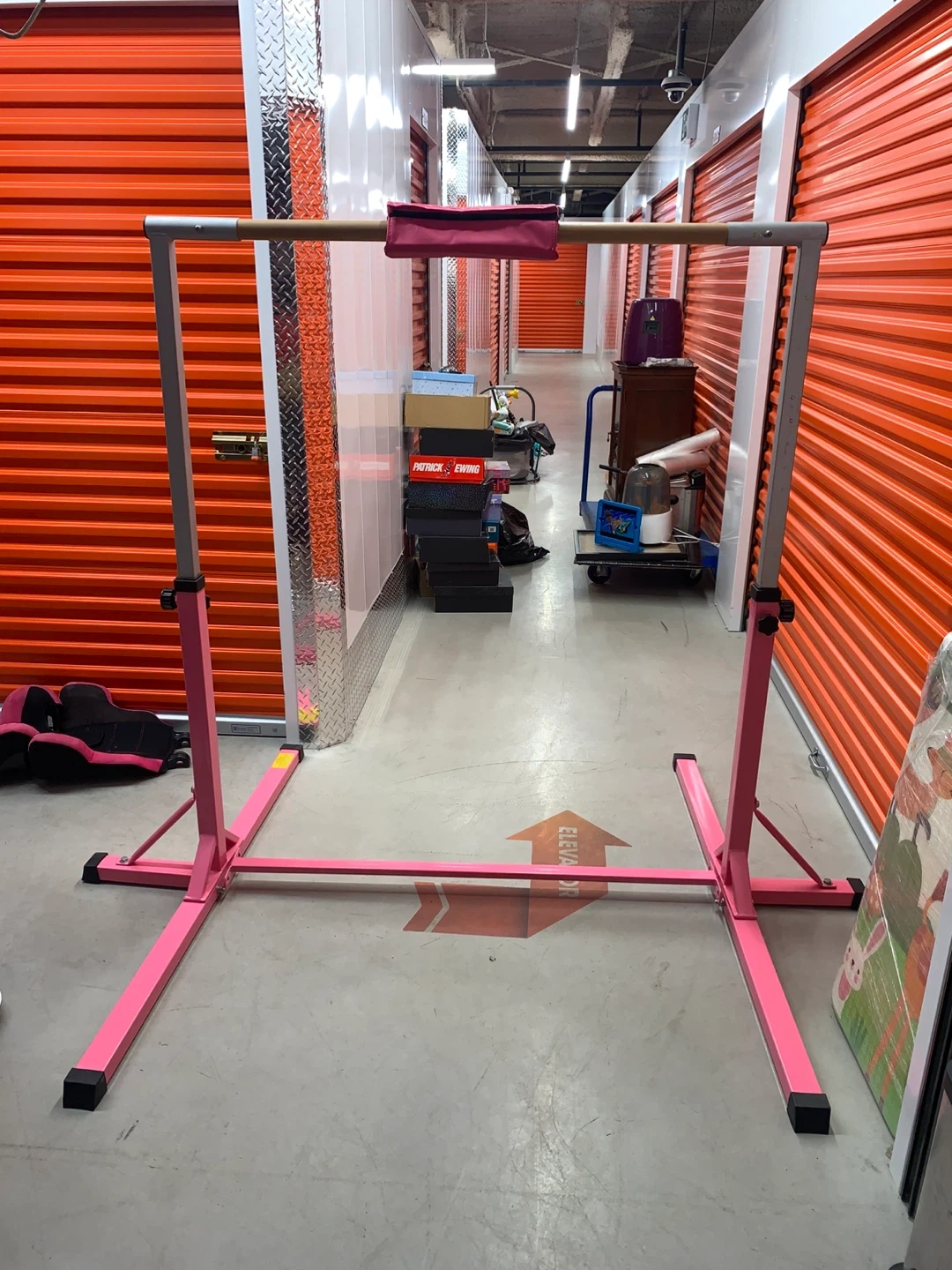 Selling a pink gymnastics bar complete with a mat! It's in great shape and perfect for young gymnasts to practice at home. The mat provides a safe and comfortable landing space, making it ideal for learning new skills