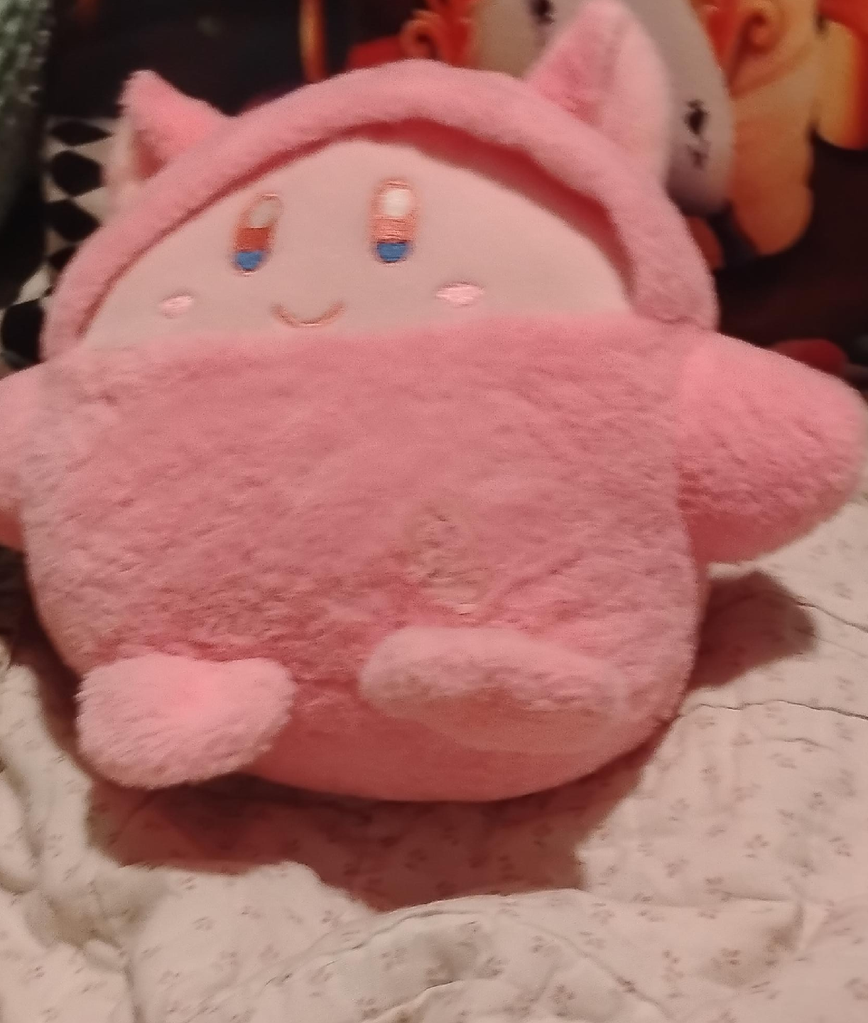 Selling a cute pink Kirby plushie! It's in great condition and ready for a new home. This soft and cuddly plush is perfect for Kirby fans of all ages