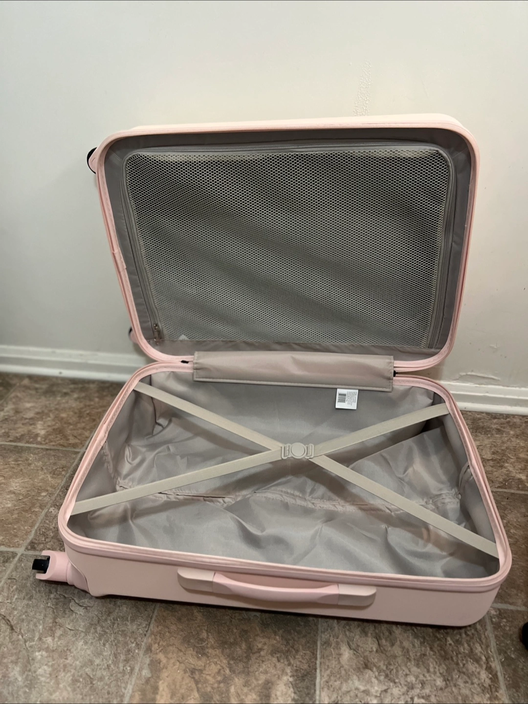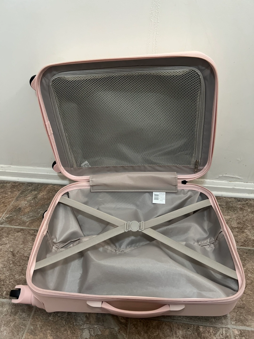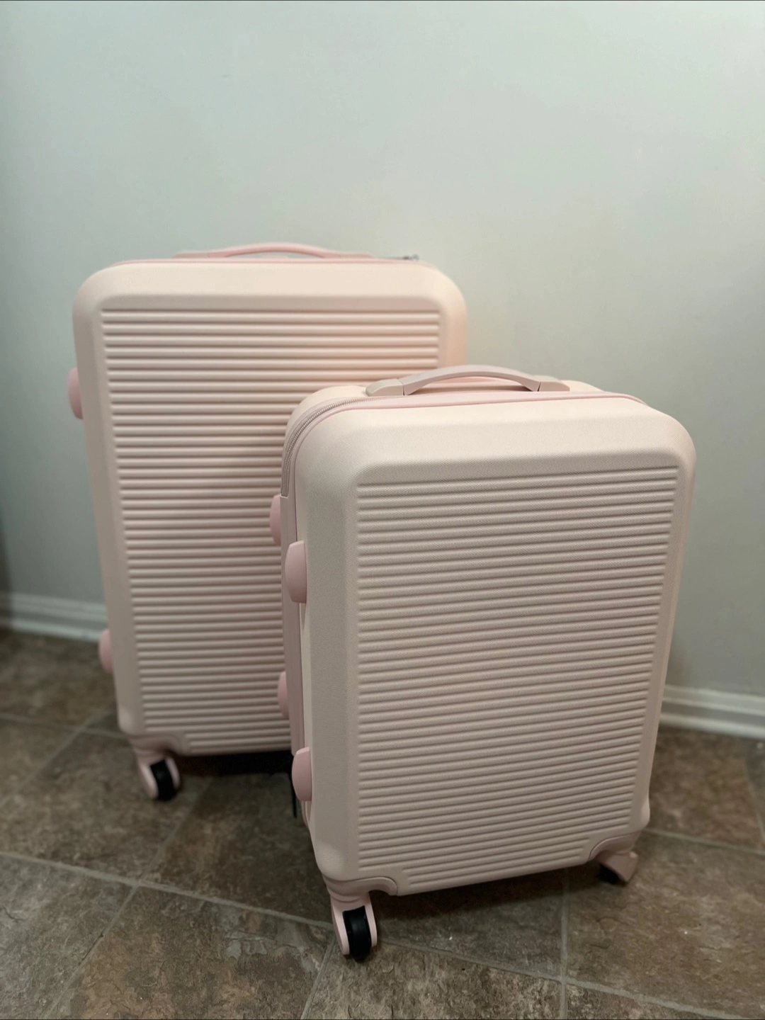 Selling a cute pink luggage set that includes two suitcases - one is a carryon. Perfect for your next trip! Both are new and ready to go