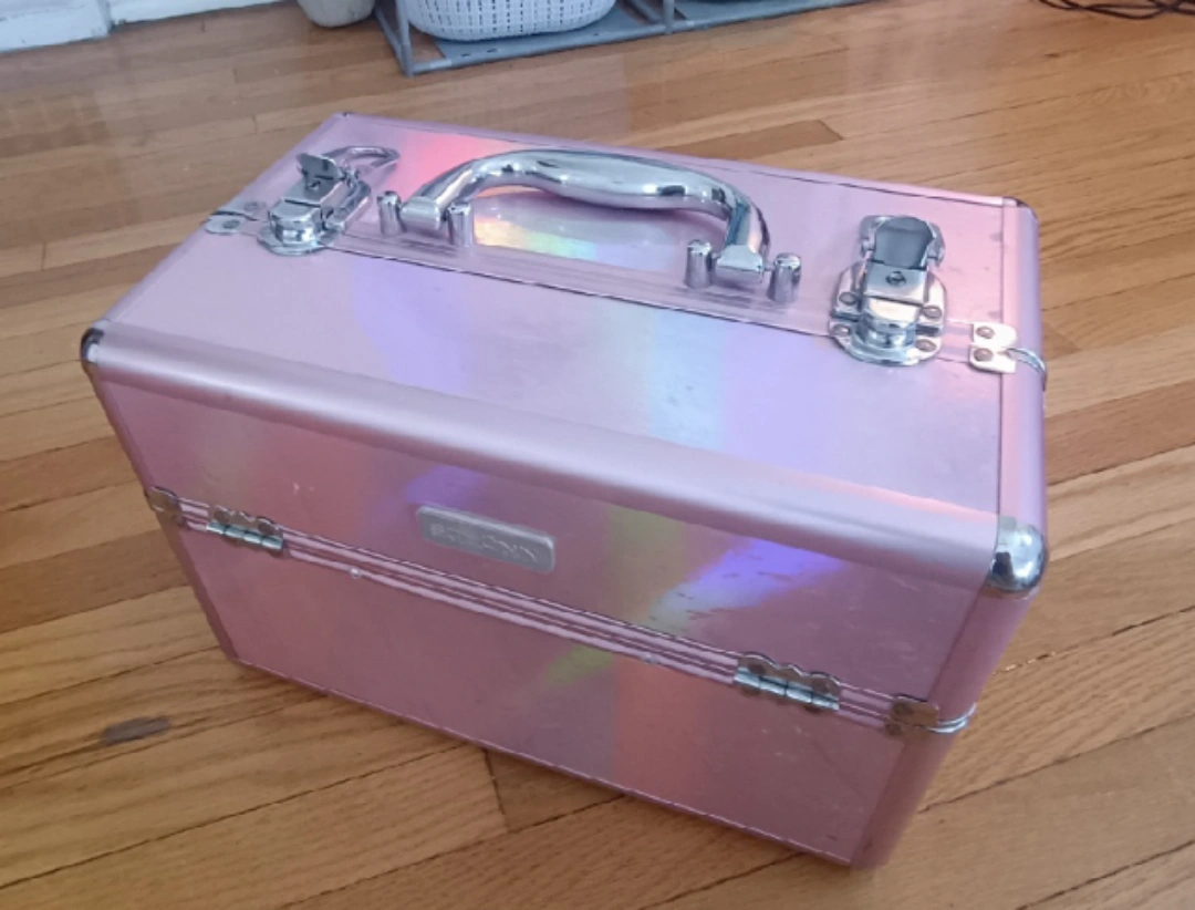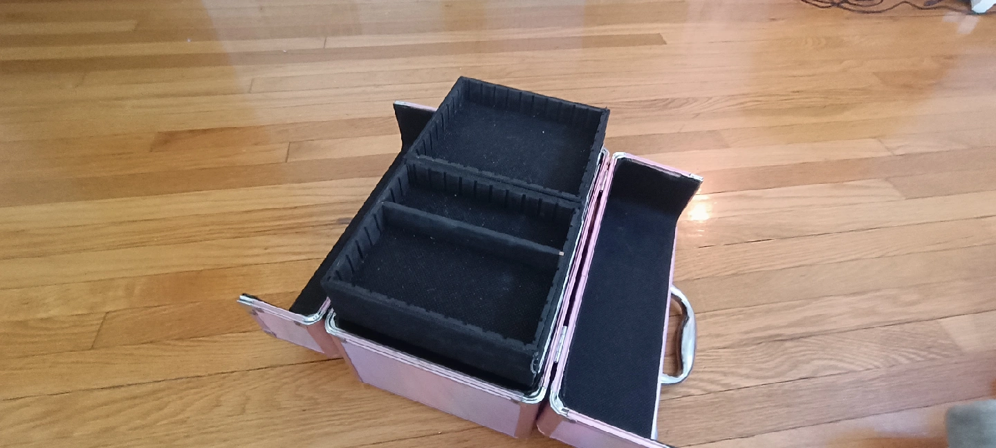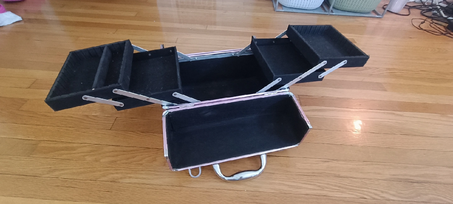Selling a pink makeup organizer box! It's in great shape and perfect for keeping all your cosmetics tidy. The box features multiple compartments to store different items, making it super practical for makeup lovers