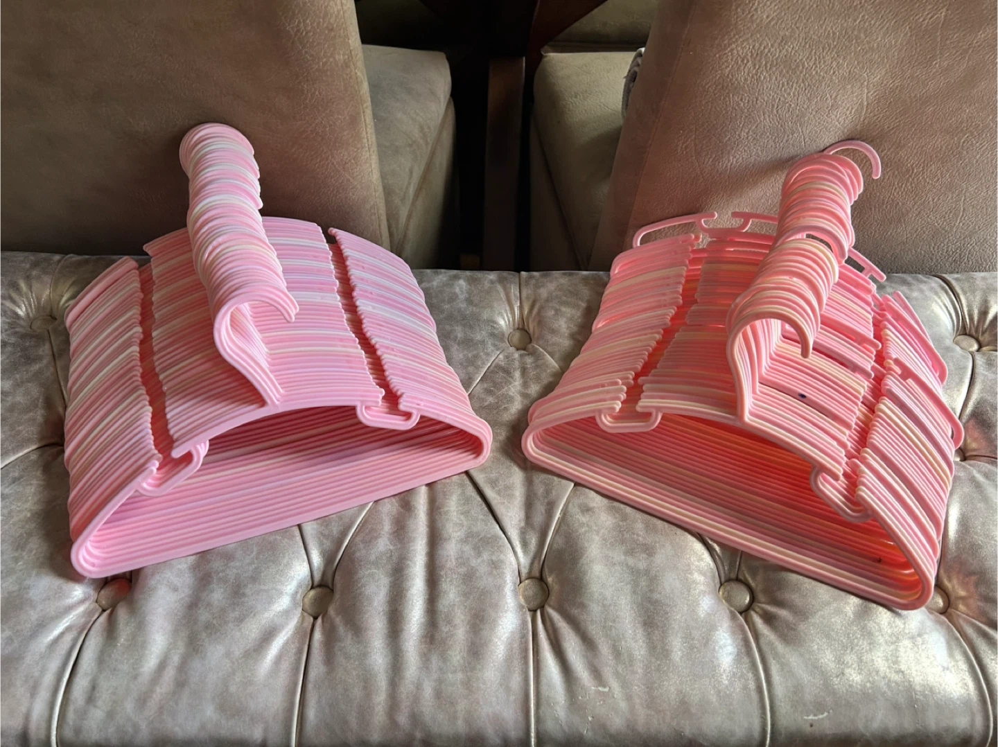 Selling a bundle of pink plastic clothes hangers. They're in great shape and ready to organize your closet!