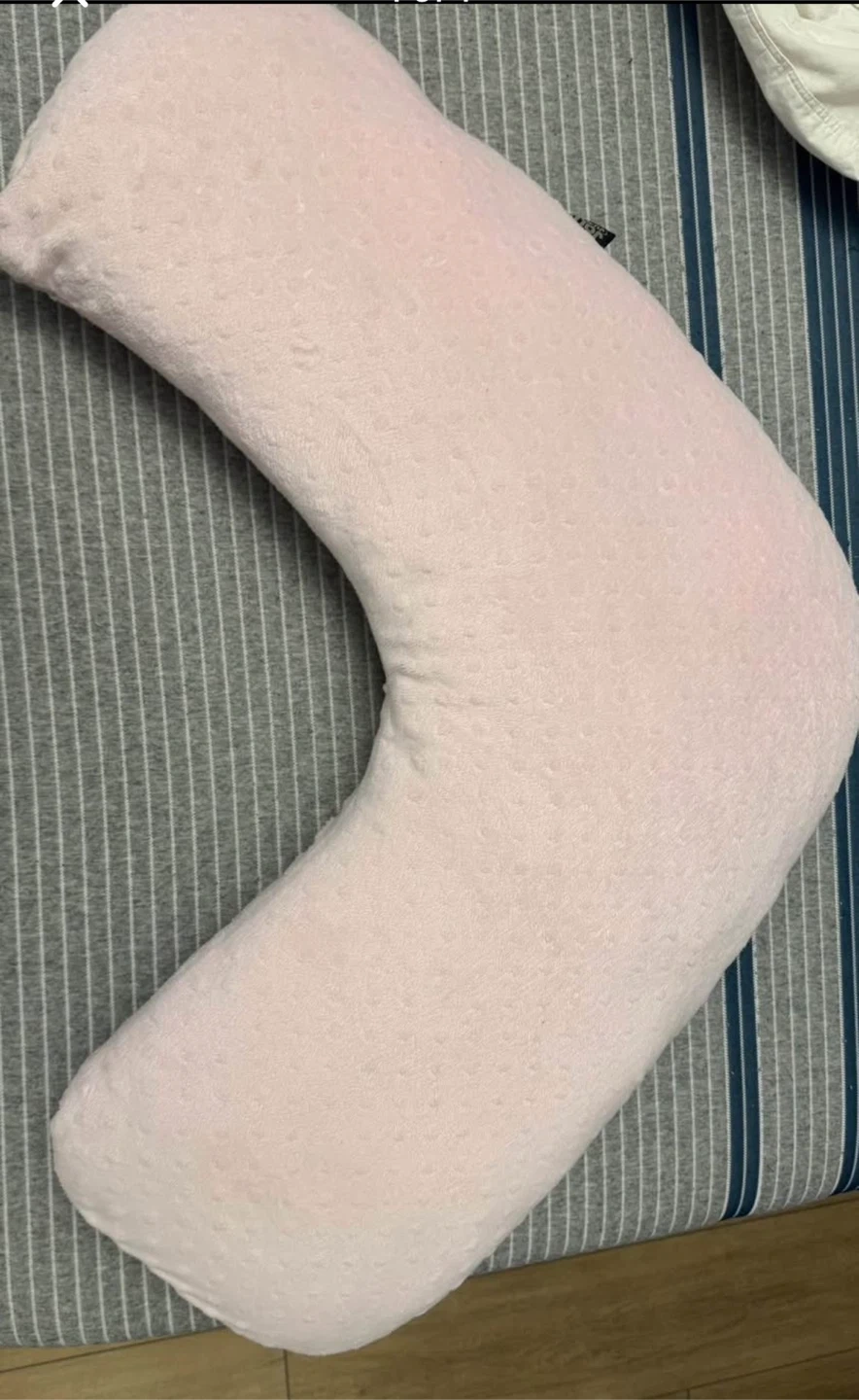 Selling a comfy pink pregnancy pillow! It's in great condition and perfect for expecting mothers who need extra support while sleeping or relaxing. The pillow is soft and has a textured surface