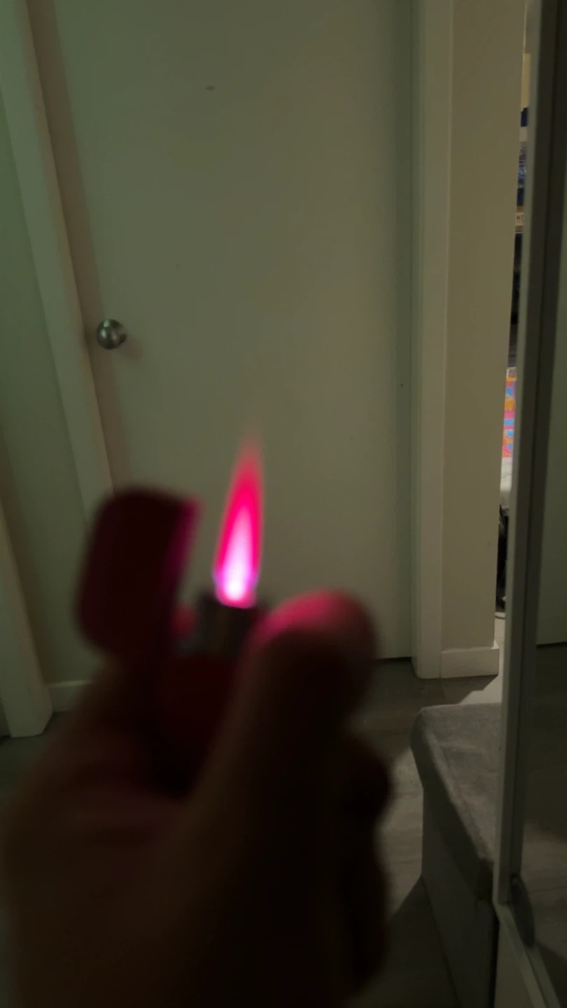 Selling a cute pink refillable lighter! It's in great condition and ready to use. Pink and sparkle body and the Jet flame is big and turns pink.