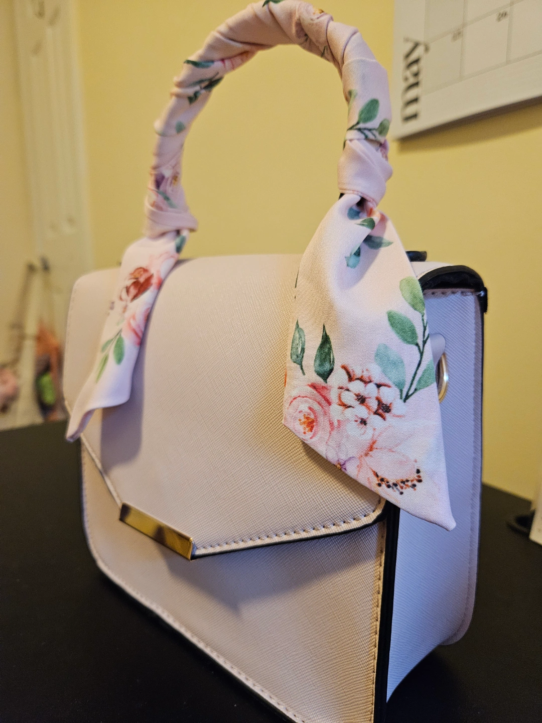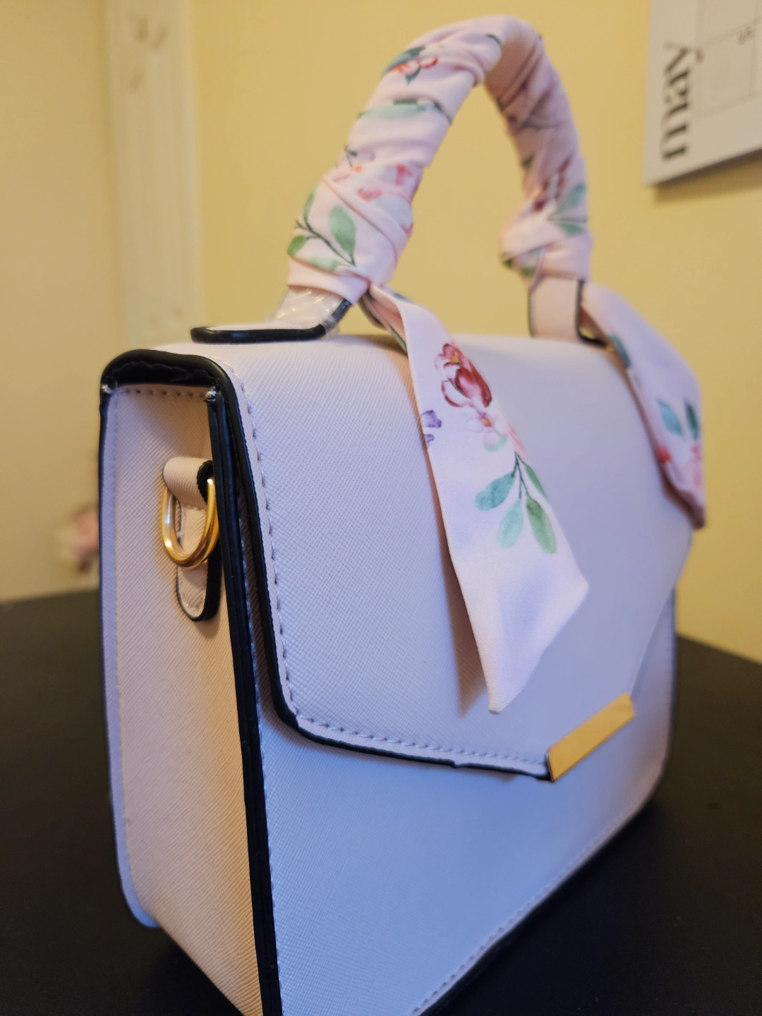 Adorable light pink satchel handbag. Features a gold-toned clasp and detachable shoulder strap. Includes a pretty floral scarf tied to the handle. Small enough for everyday use. Payment: Cash Meet up: Dovercourt park. ossignton or dufferin station! :)