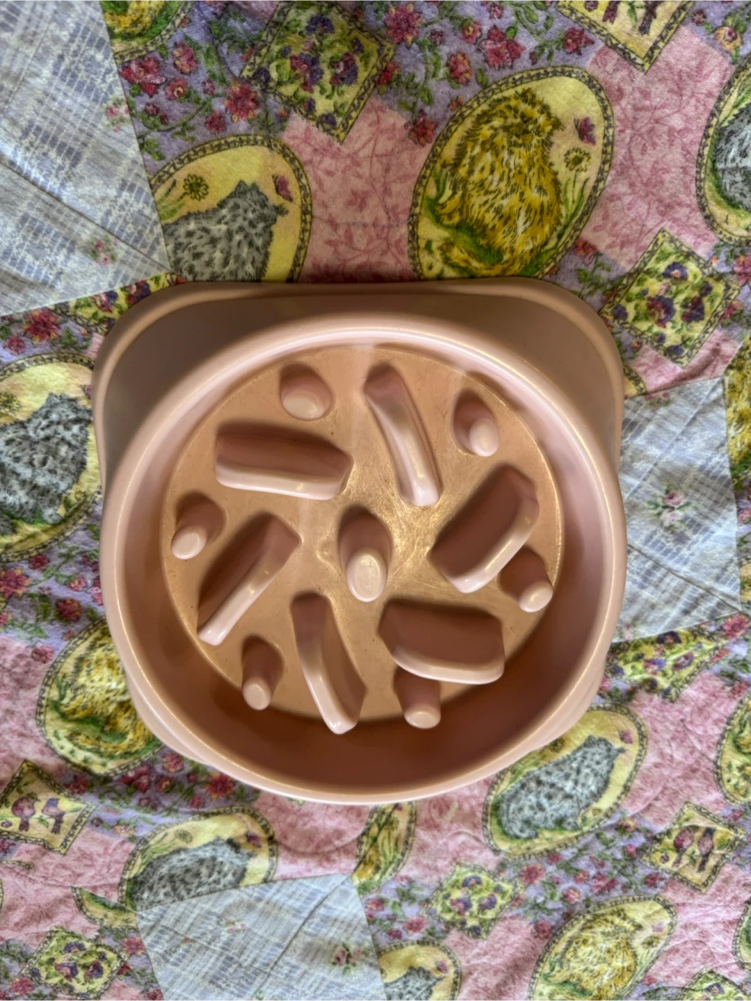Slow bowl feeder, works great for animals who eat food too fast