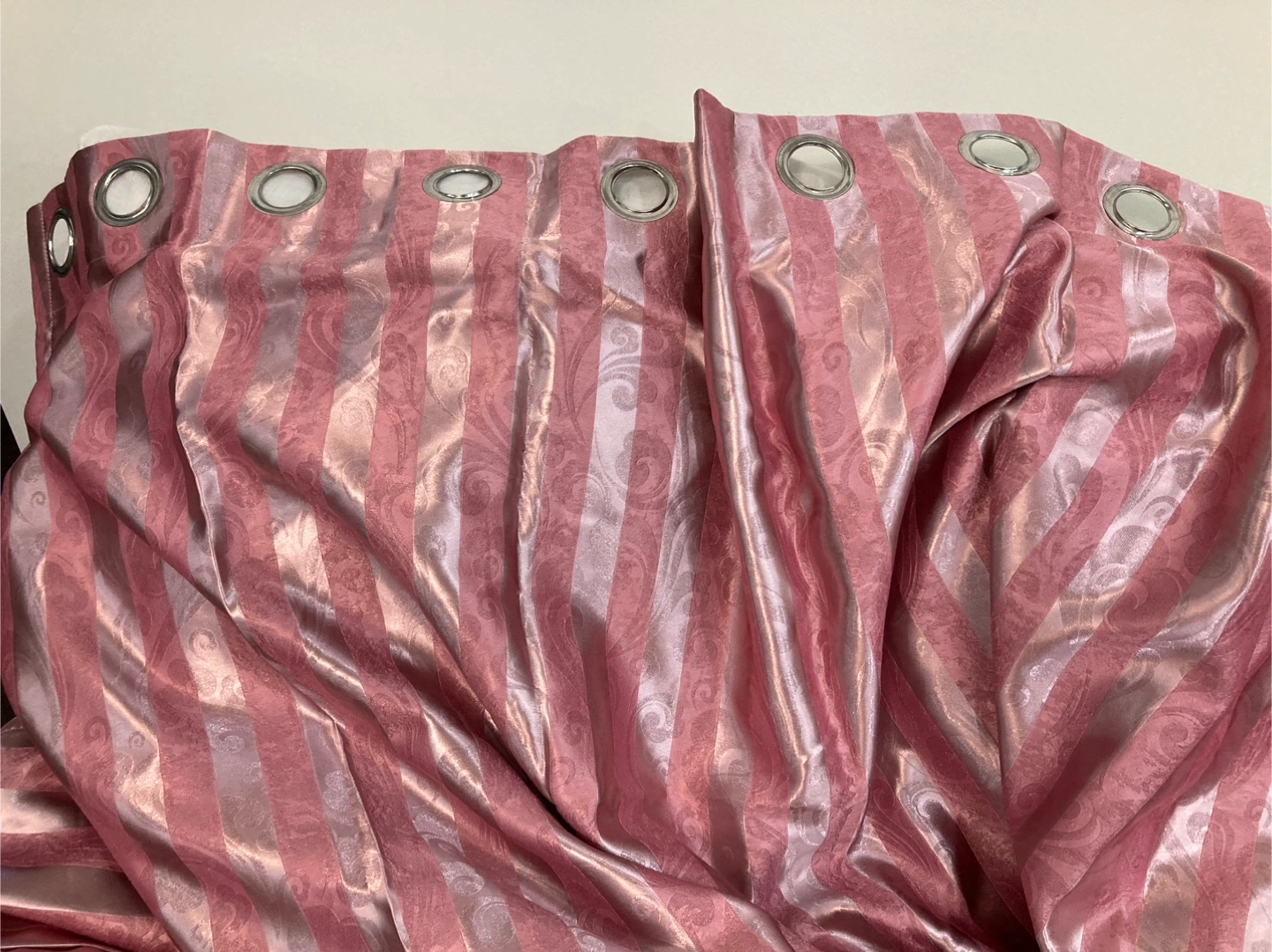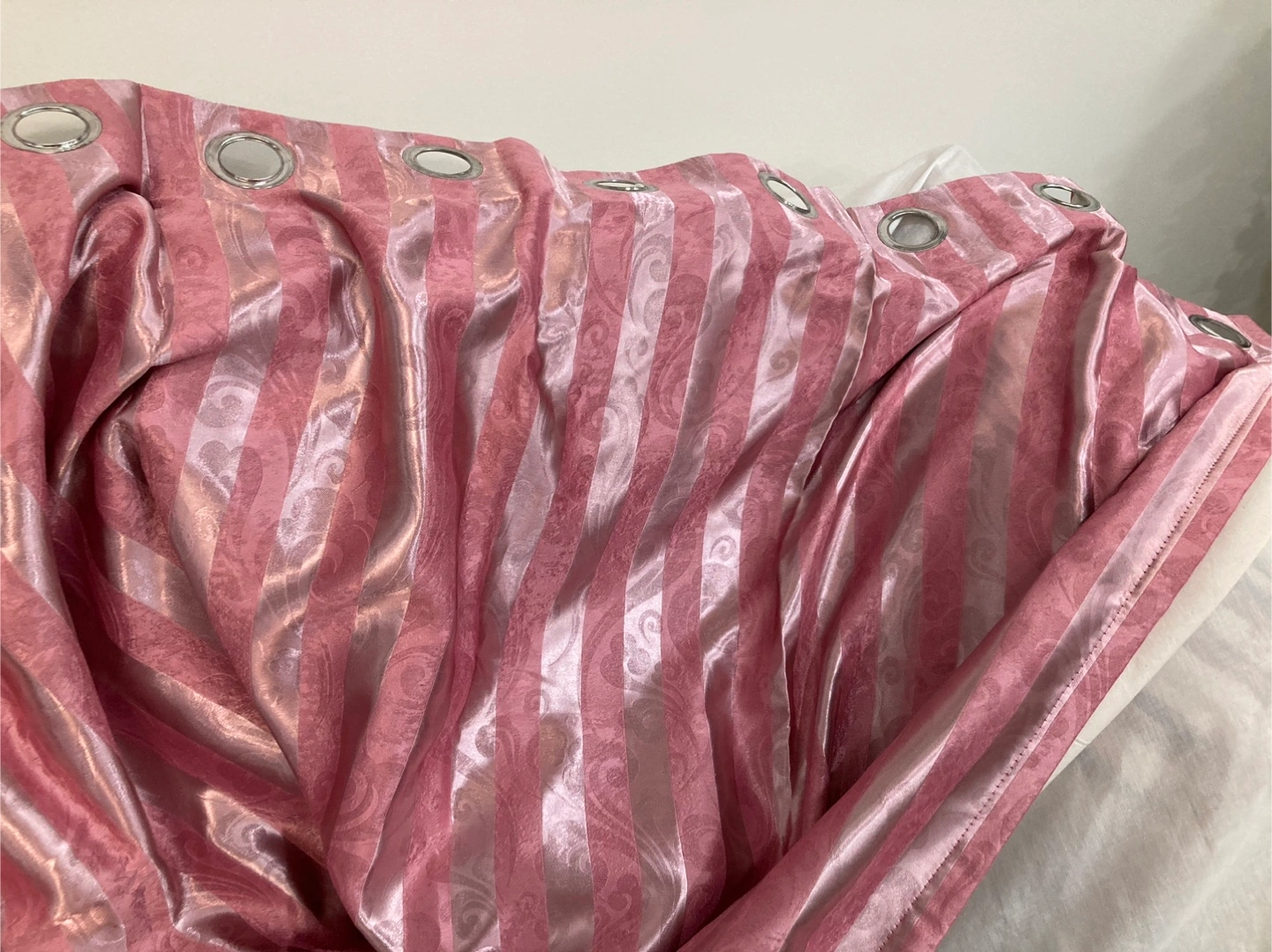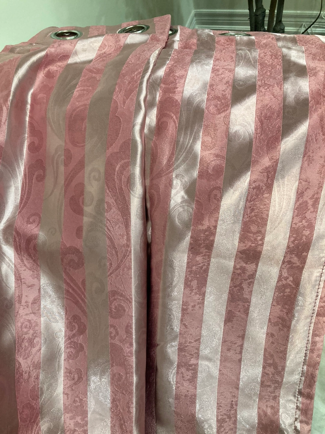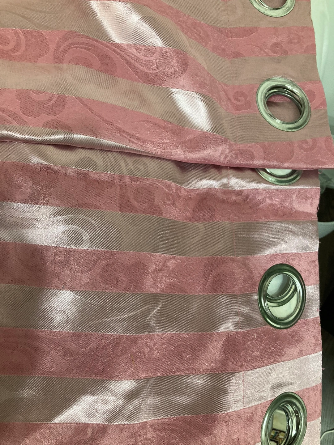 One pretty pink panel available! It is new, in good condition and ready to add a touch of elegance to any room. The material feels soft and has a subtle sheen, giving them a luxurious look. Cotton lining in the back 52x84” Only one panel available