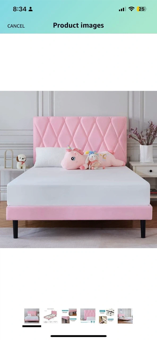 Selling a cute pink upholstered platform bed frame! It's in great shape and would be perfect for a kid's room or a guest room. The bed frame is sturdy and easy to assemble .Pet free, good condition