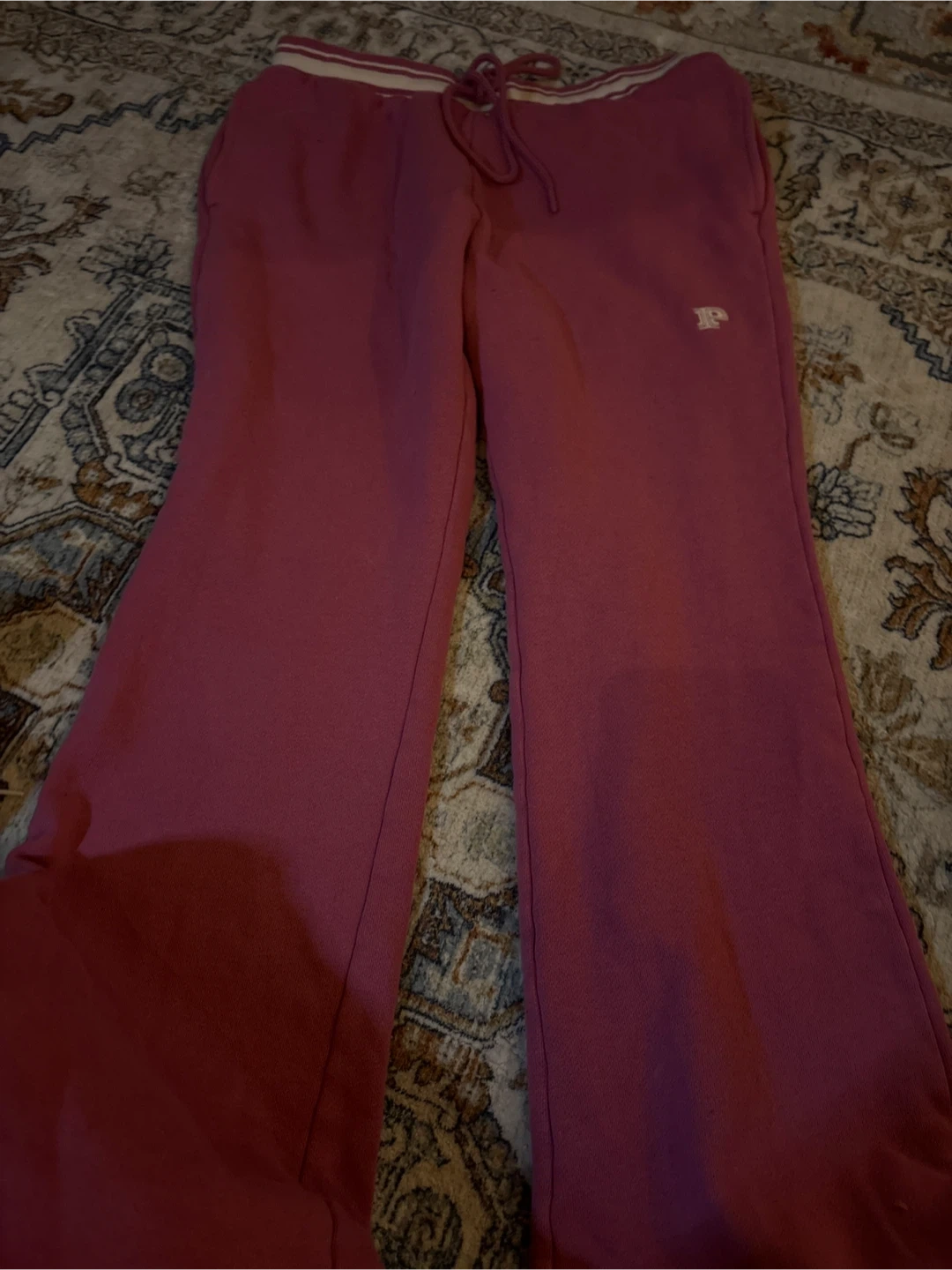 Selling a pair of pink Victoria's Secret sweatpants. They are in great condition and super comfy! Perfect for lounging around the house or running errands.