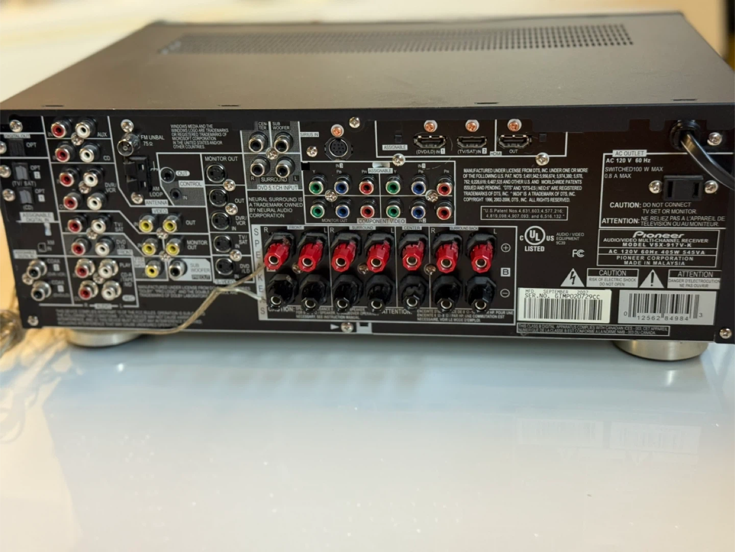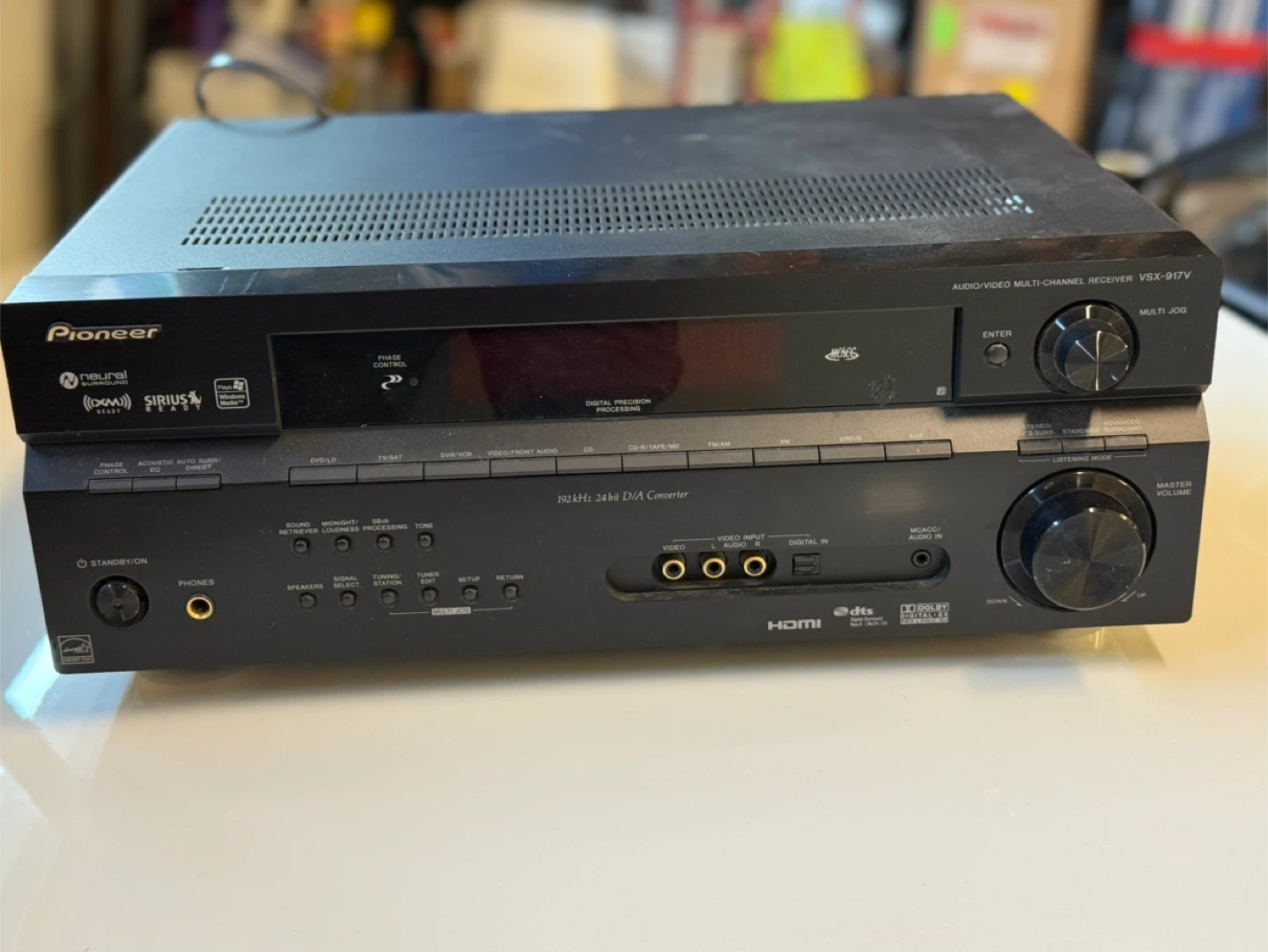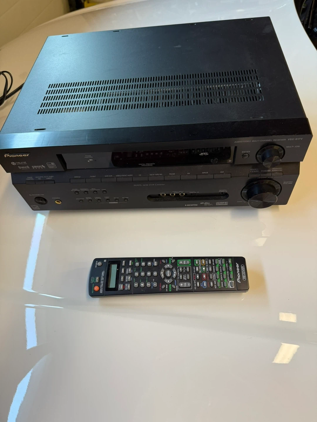 Selling a Pioneer VSX-917V-K audio/video multi-channel receiver! It comes with a remote control. This receiver is ready to enhance your home theatre experience. Perfect for audiophiles and home entertainment enthusiasts alike This used Pioneer VSX-917V-K receiver delivers high-quality audio performance for your home theatre setup. It comes with a remote for easy control. The unit is in good condition. Key Features: * Multi-channel receiver * HDMI connectivity * Remote control included • Tested, works excellent * $50 or best offer