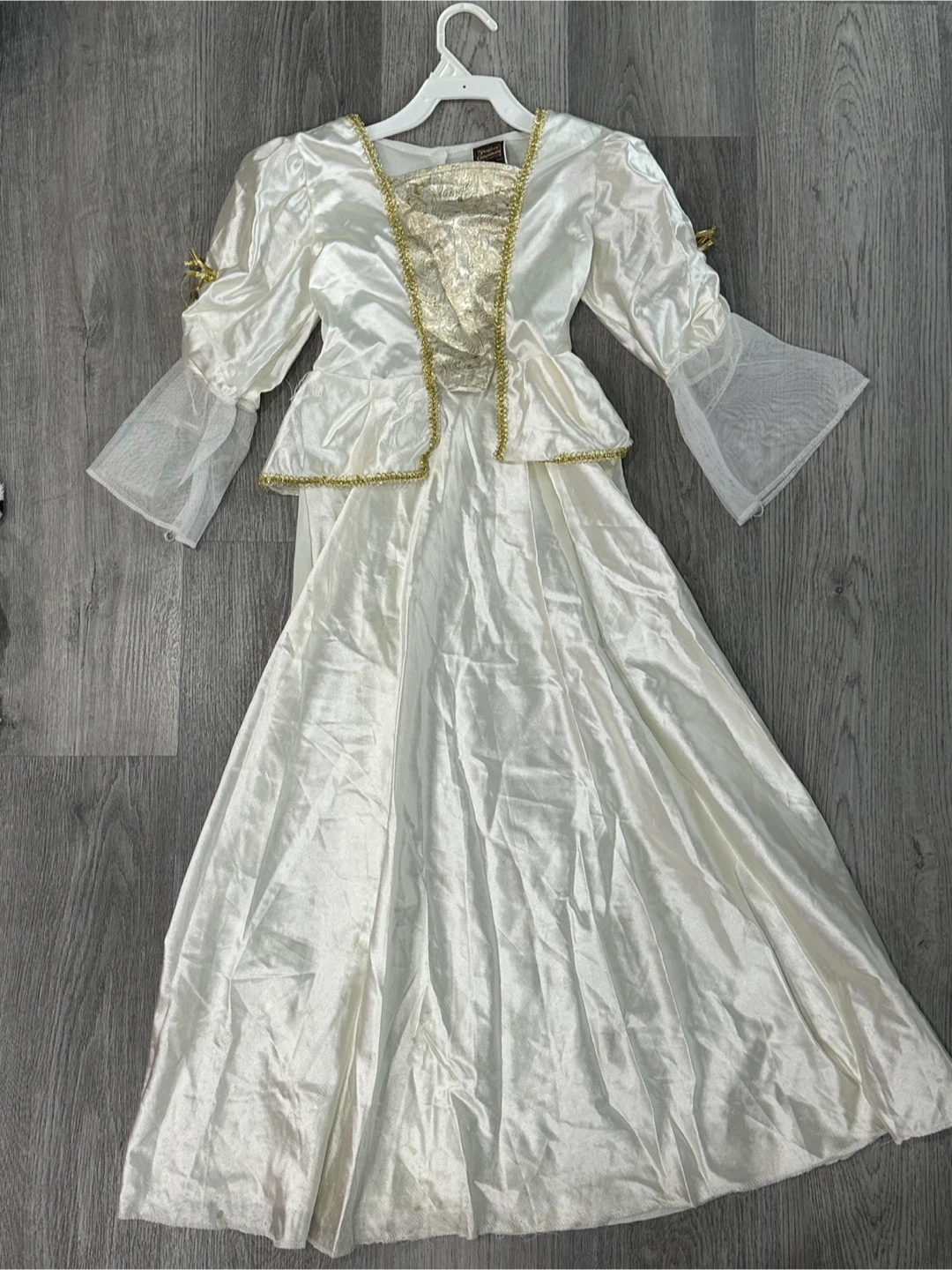 Selling a beautiful princess costume! It's a size small and features elegant gold detailing. Perfect for dress-up or Halloween