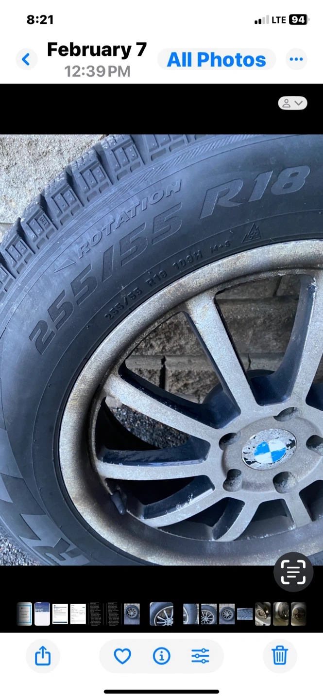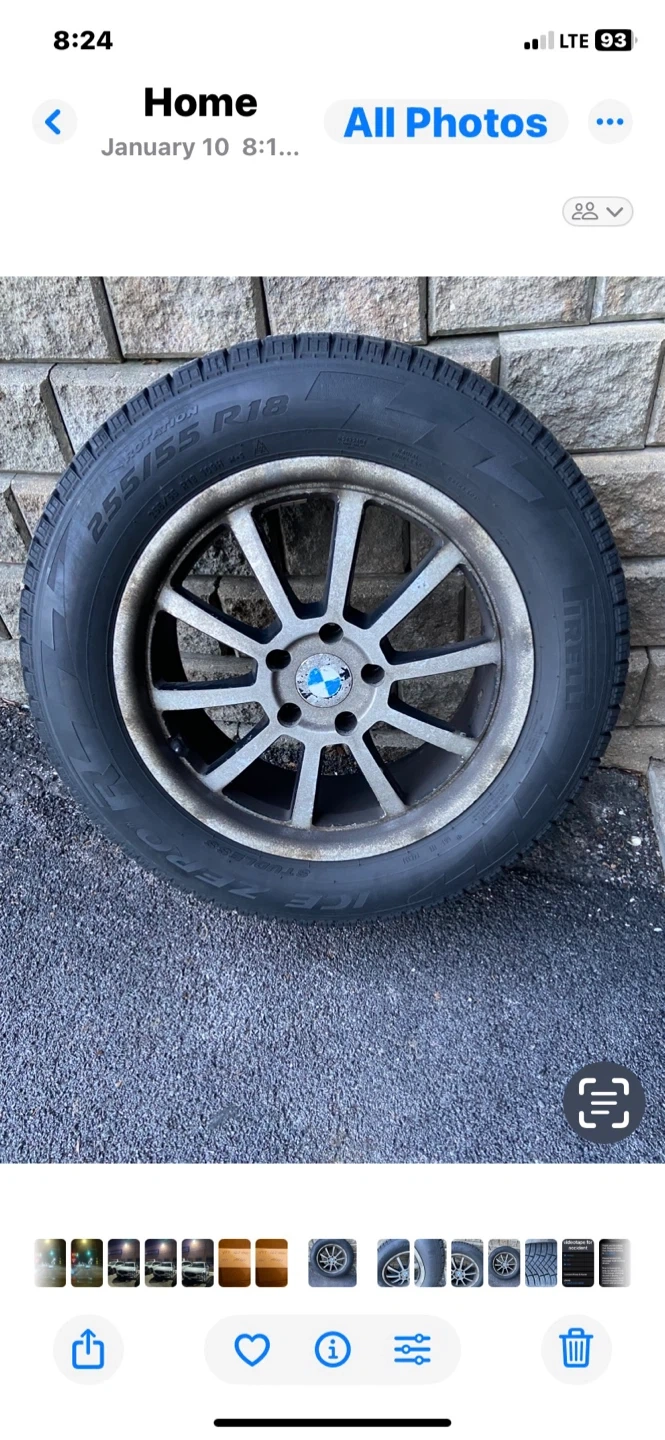 Selling a Pirelli winter tire mounted on a BMW rim. The tire size is 255/55 R18. Great for winter driving!