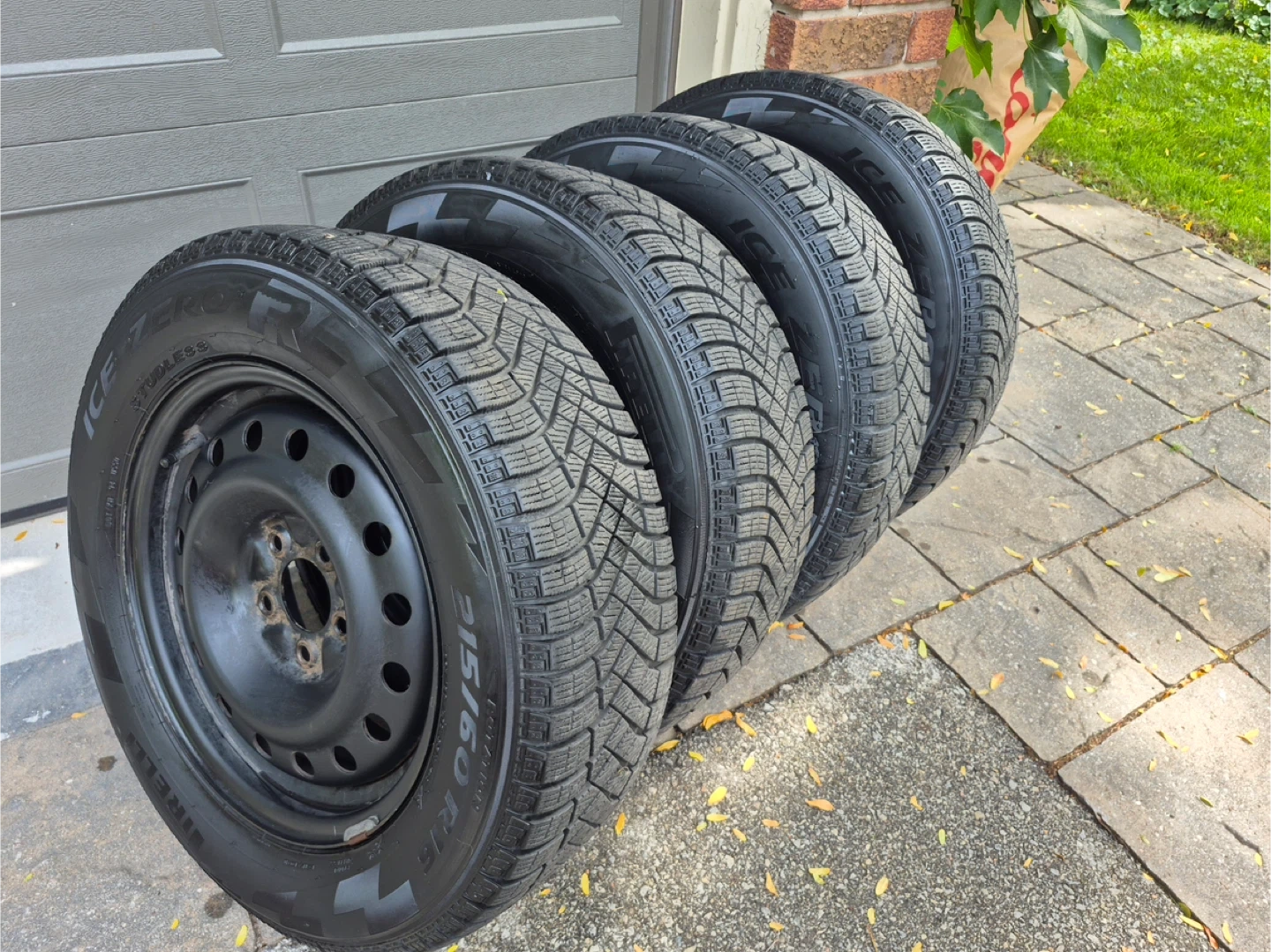 PICK UP ONLY - OAKVILLE, Lakeshore & Fourth Line area. Set of 4 Pirelli Ice Zero winter tires on steel rims. 215/ 60 R16 99H Very good condition. Retail value - $900 plus. Asking $400.