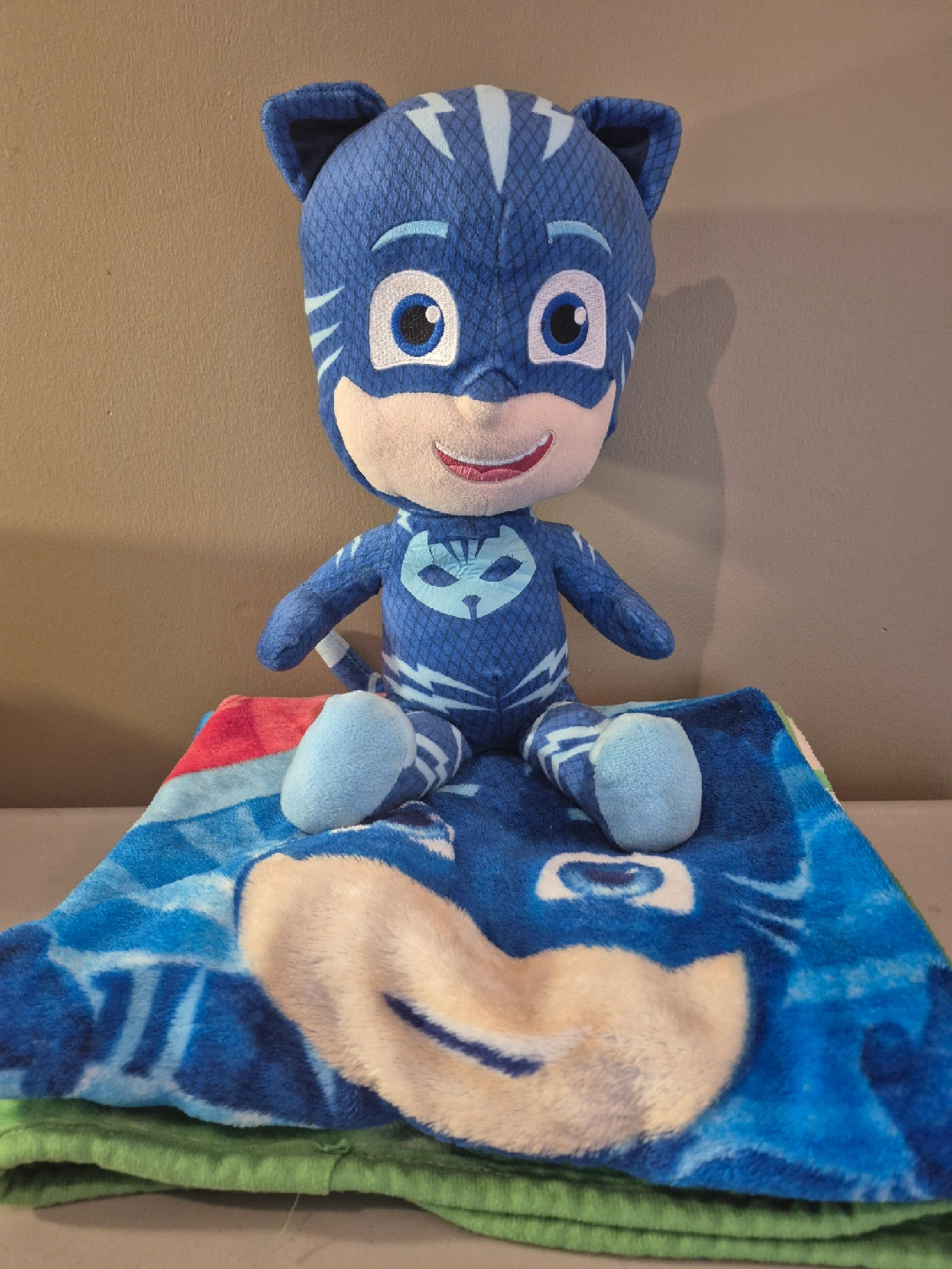 Selling a PJ Masks Catboy plush toy along with a matching blanket! Both are in great condition and ready for a new home. Perfect for any little PJ Masks fan!