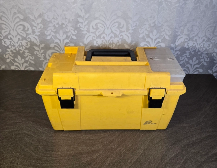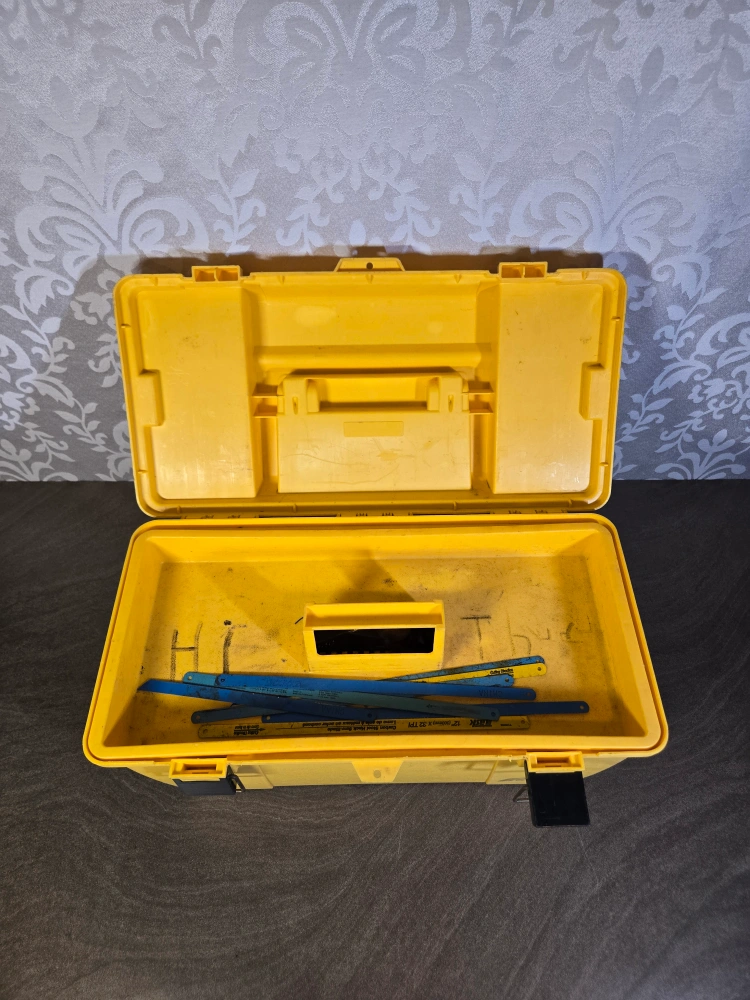 Definitely used condition but still has lots of life left. Needs a good clean. It has a black handle and black latches which all work. Perfect for storing your tools or other items. 19" wide, 10" depth and 11" tall. Cross-posted. 💥If you have a moment please have a look at my other items for sale.