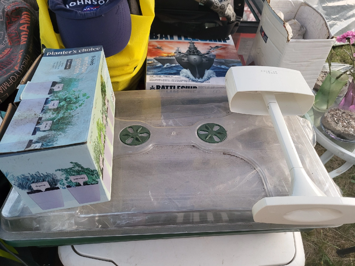 Selling a Planter's Choice 9-herb window garden kit! It's a 34-piece kit, perfect for starting your own little herb garden right on your windowsill. Get ready to grow thyme, parsley, and more, a LED little planter.