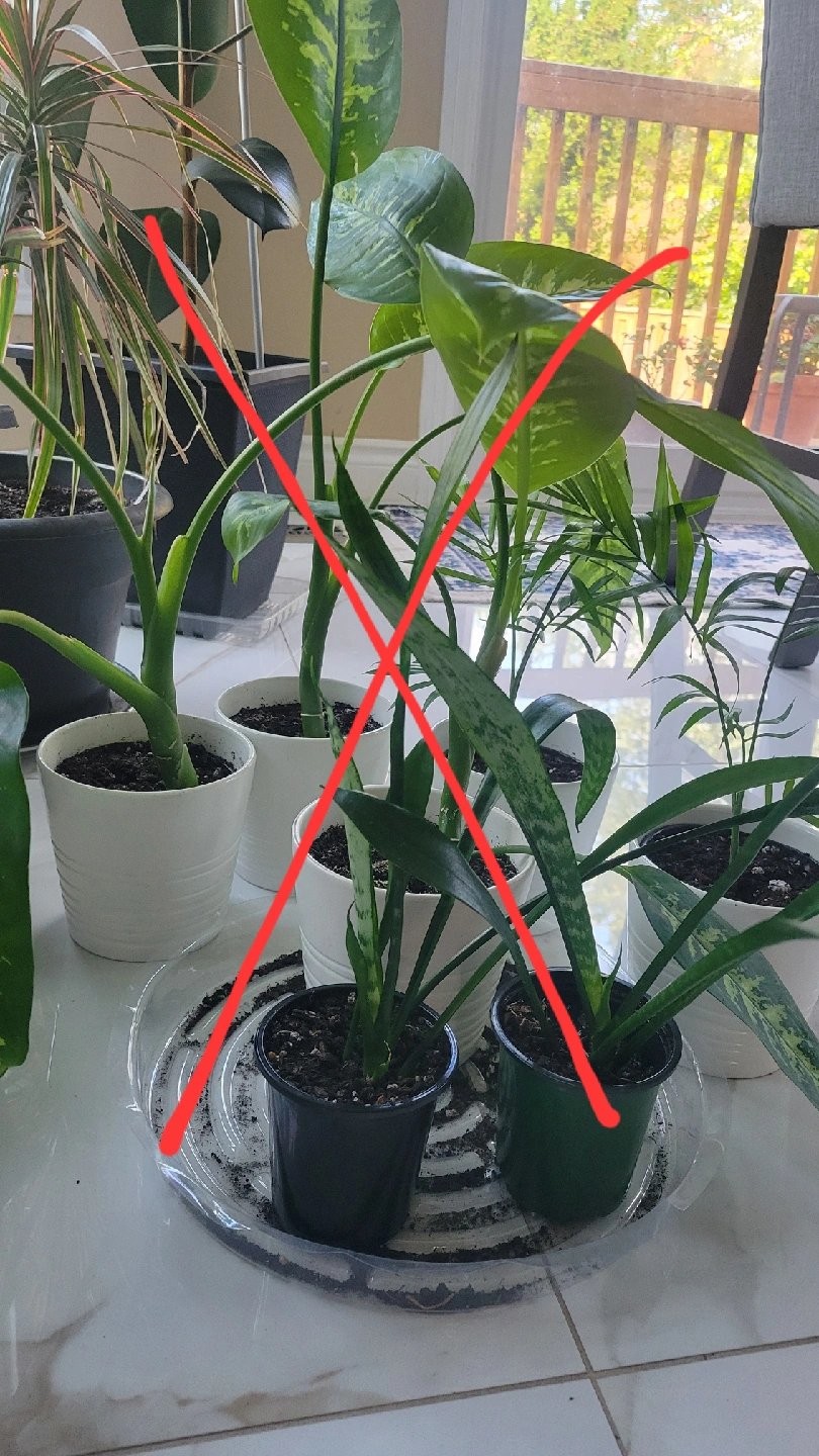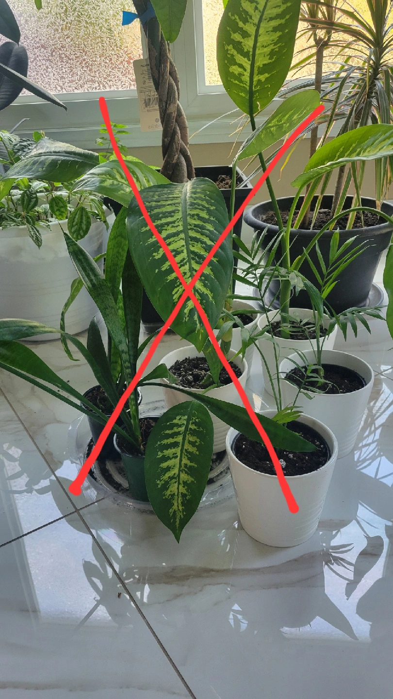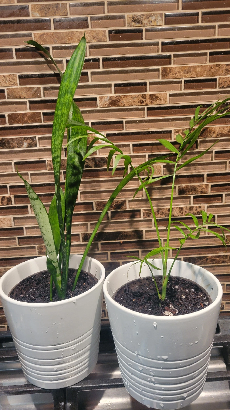 Selling 5" white Musköt planters with starter plants one left of each Planter with free palm $6 Planter with free snake plant $6 SOLD Planter with Dieffenbachia (dumb cane) $10