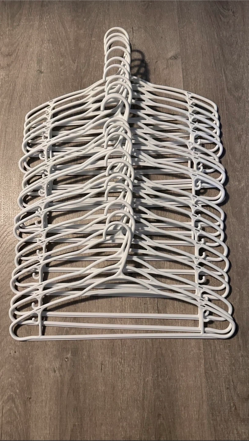 Bundle of 21 plastic clothes hangers in like new condition. Pick up at Front St and Sherbourne Street. Cash only please.