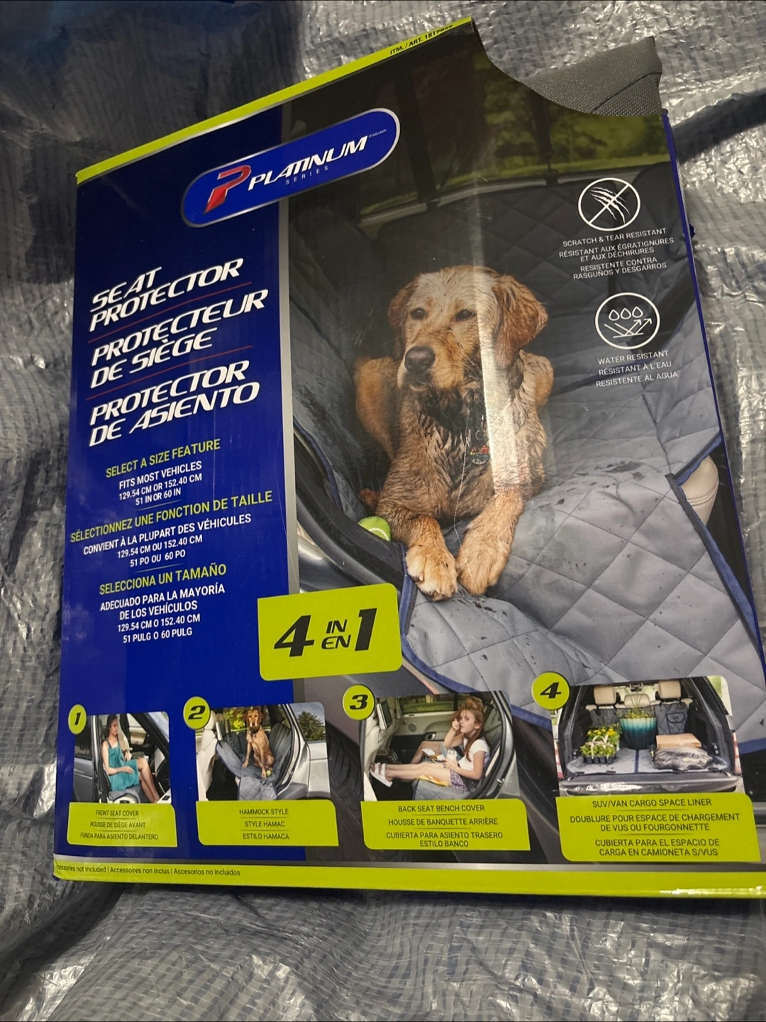 Selling a brand new Platinum Series 4-in-1 Seat Protector still in its original packaging! This versatile protector can be used in multiple configurations to suit your needs: - Front seat cover - Hammock style - Back seat bench cover - SUV/van cargo space liner It's scratch-resistant and water-resistant, ensuring your car seats stay protected from wear and tear. Adjustable straps make installation easy in various vehicles. A removable section adds to its adaptability. Keep your car interior clean and tidy with this handy seat protector!