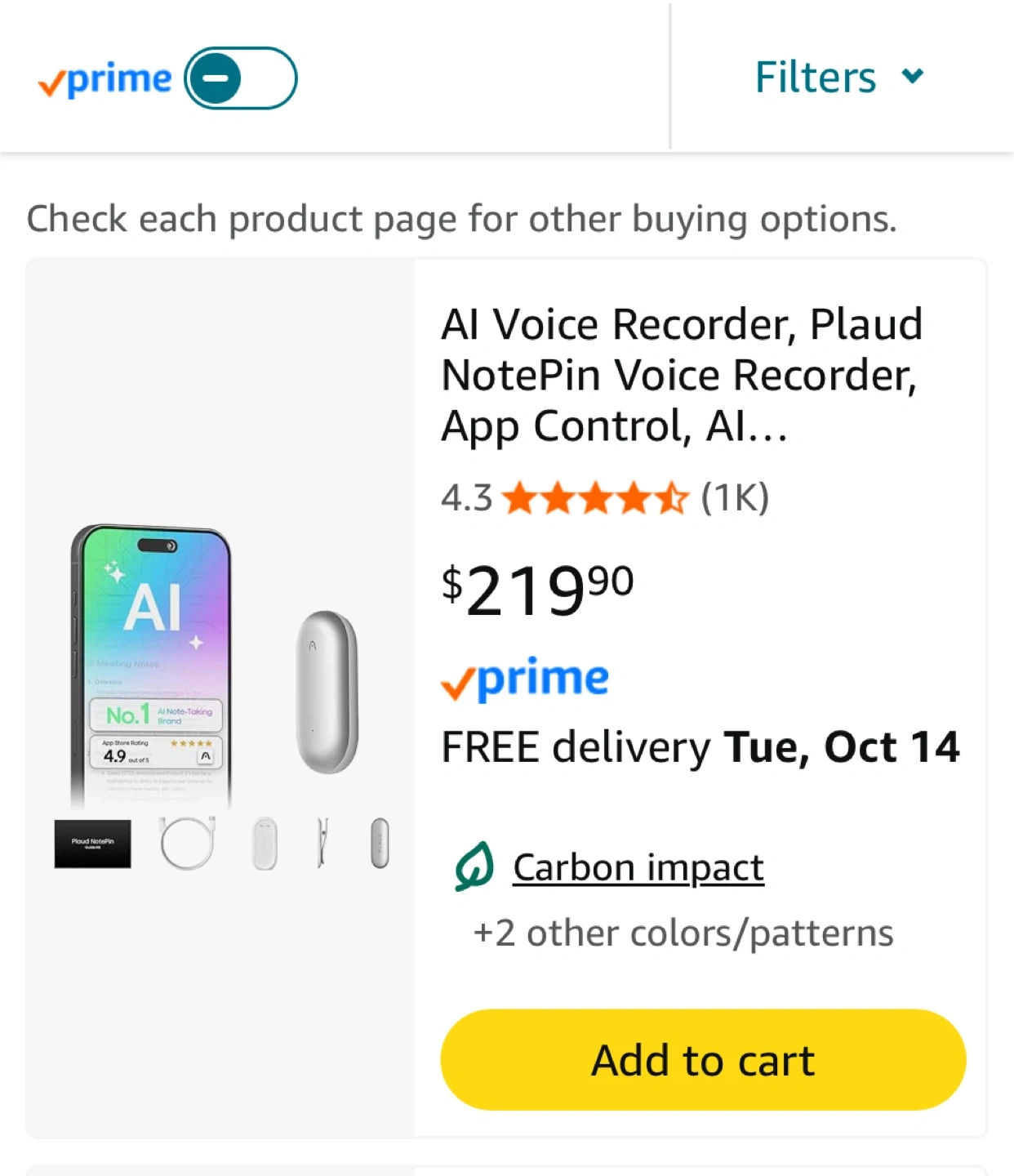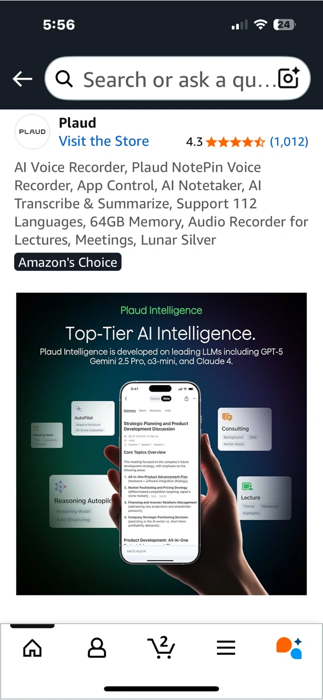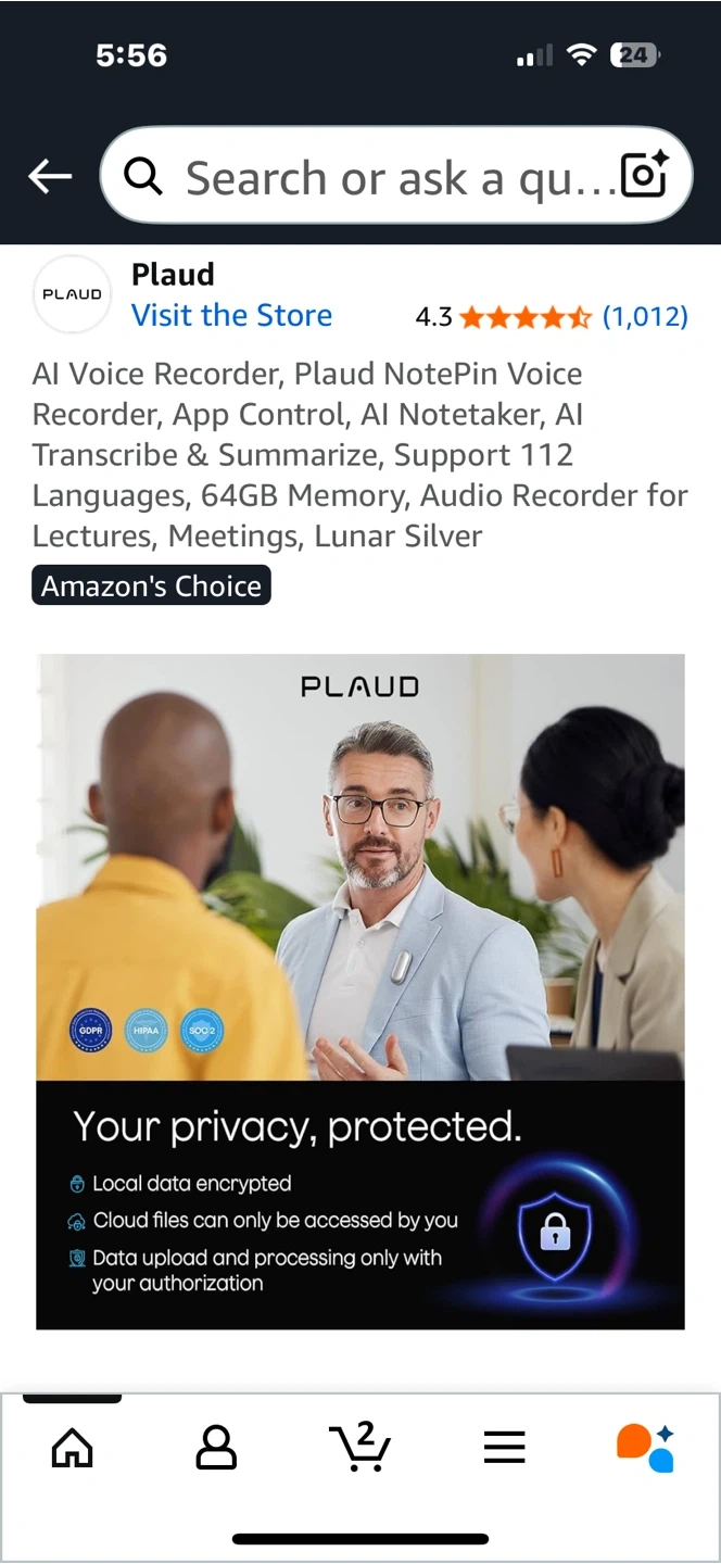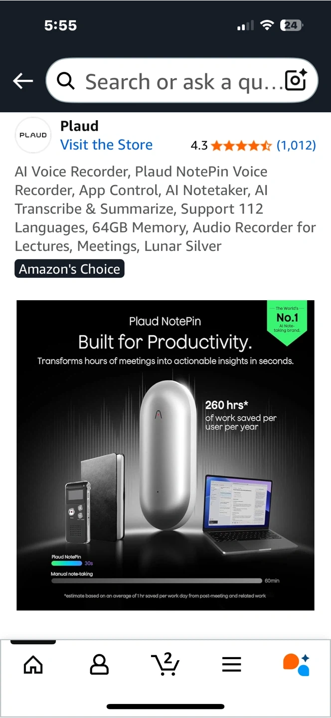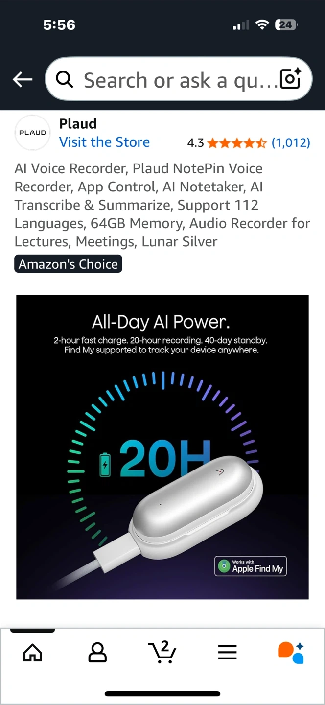 Selling a Plaud NotePin AI Voice Recorder in Lunar Silver! This nifty device can transcribe and summarize in 112 languages, with a 64GB memory. It's great for lectures and meetings. Comes with the box and all accessories, including the clip and pin for wearable styles. It's ultra-lightweight and has up to 97% transcription accuracy! New open box