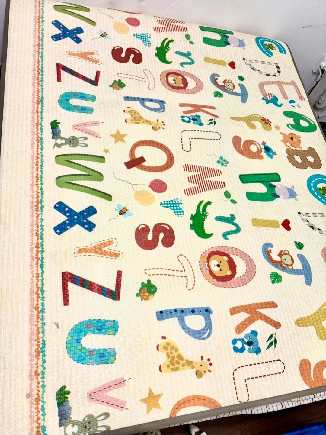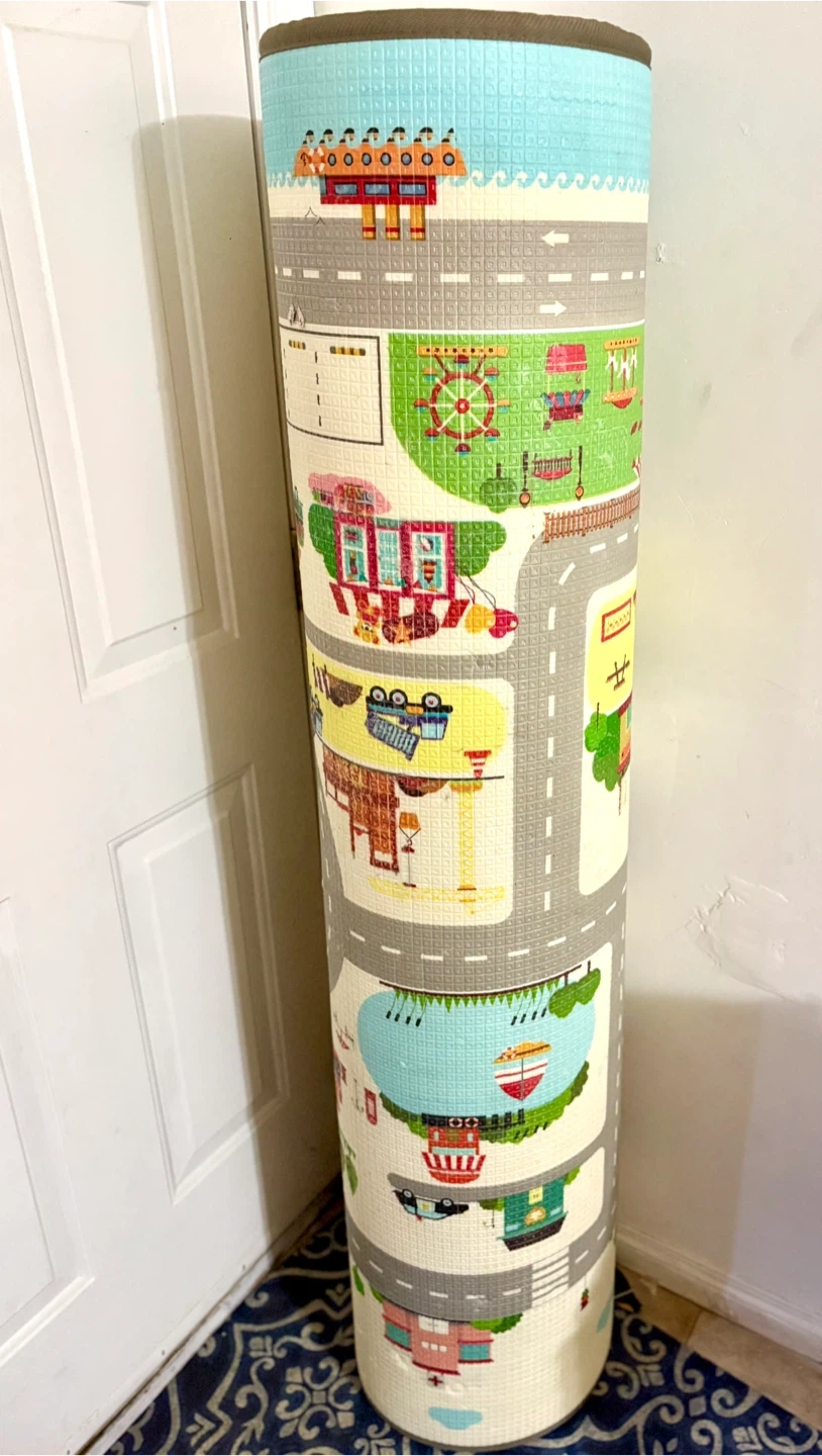 A play mat with roads and buildings on one side and the alphabet on the other! It's in great condition and ready for a new home