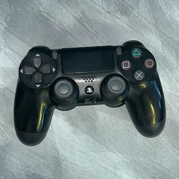 Selling a used PlayStation 4 DualShock 4 wireless controller in black. It's in good condition and ready for a new home. Perfect for gaming!